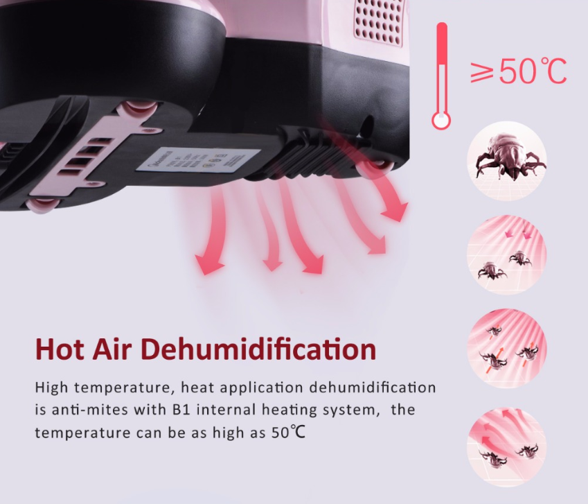 • High temperature, heat application dehumidification is anti-mites with theB1 internal heating system, the temperature can be as high as 50℃