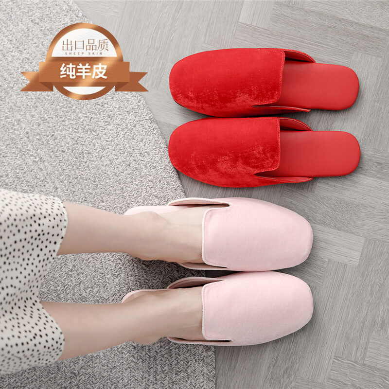 Light Luxury High-End High-End High-Grade Sheepskin Leather Slippers Home Indoor Wooden Floor Men and Women Home Office