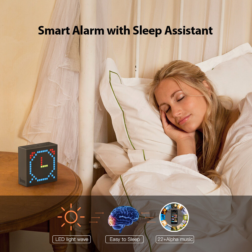 Start your morning with 14 built-in daily alarms with highly-customizable options. Both audio and light on your Timebox-Evo will come on gradually to imitate the actual sun rise scenario.