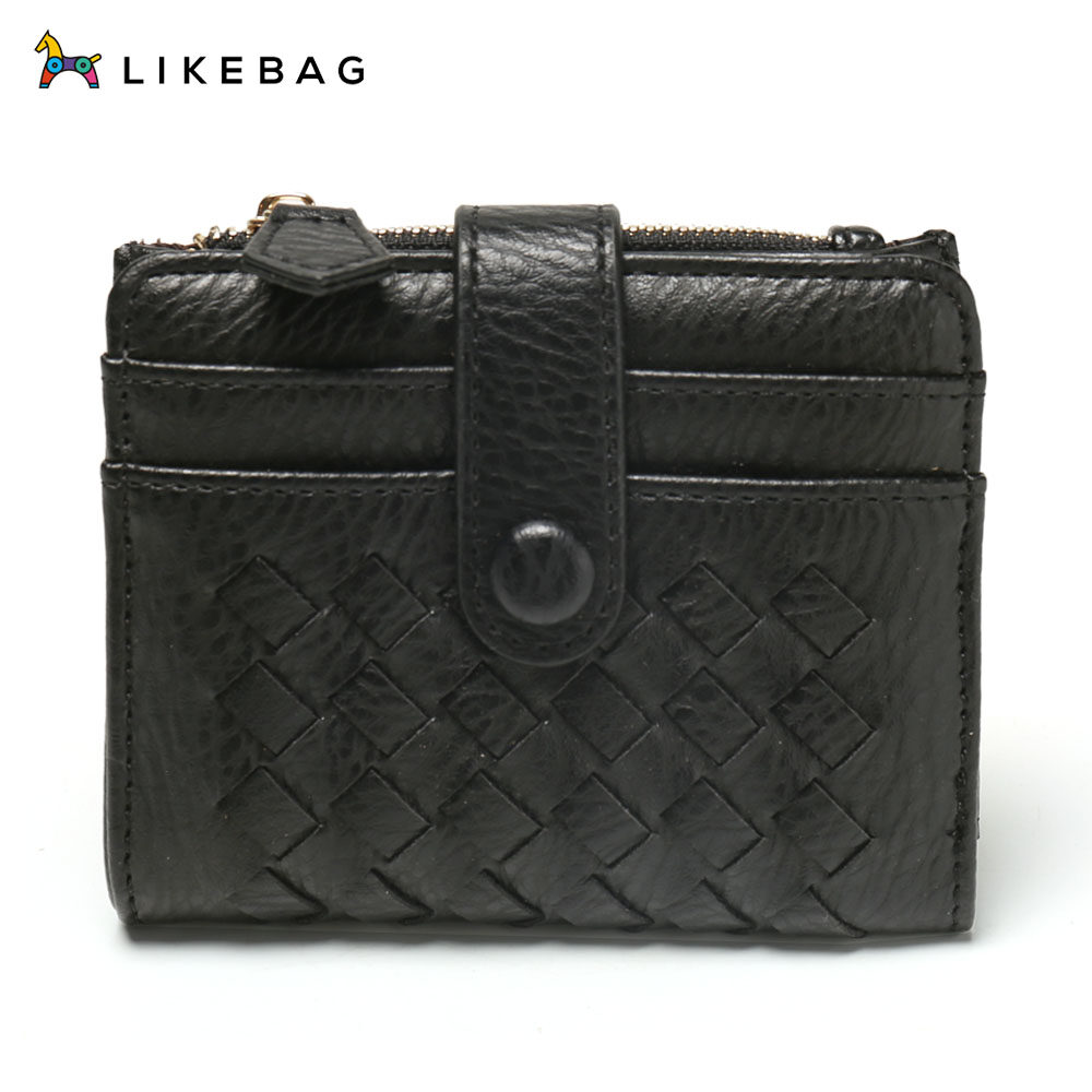 LIKEBAG 2022 Fashion Leather Weave Small Wallet Card Holder