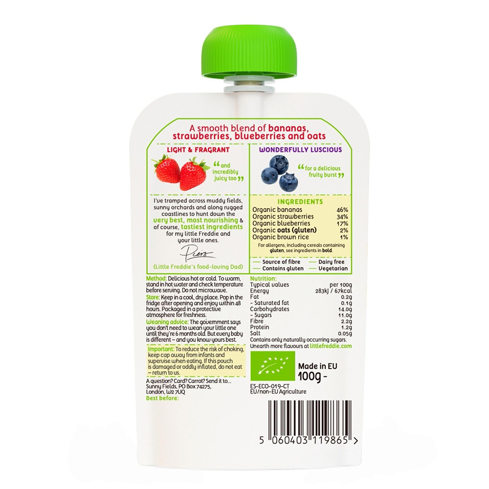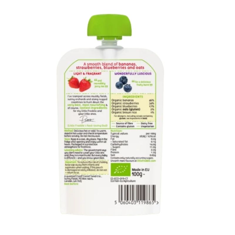 Organic Little Freddie Juicy Strawberries, Blueberries & Oats INNER BOX (100g x 6)