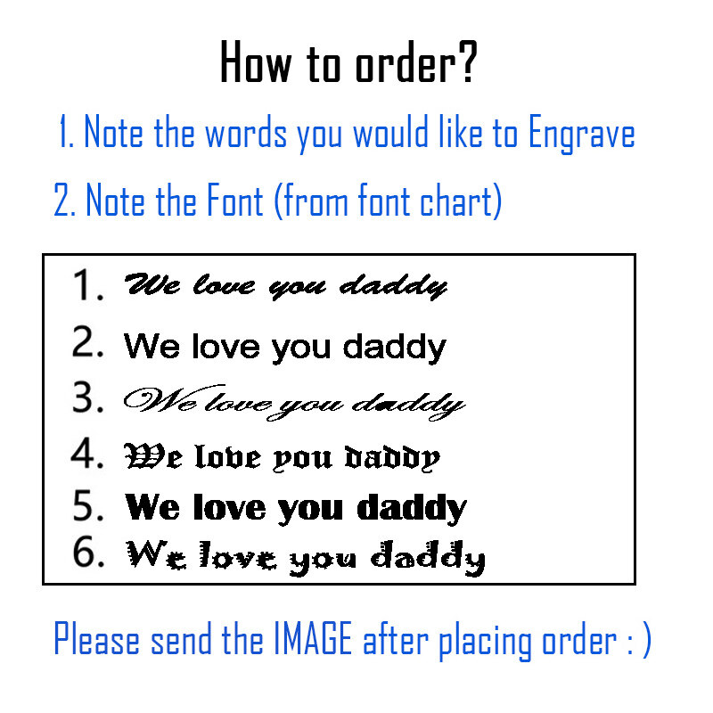 How To Order? 1. Note the Text you want to engraved 2. Note the Text Font