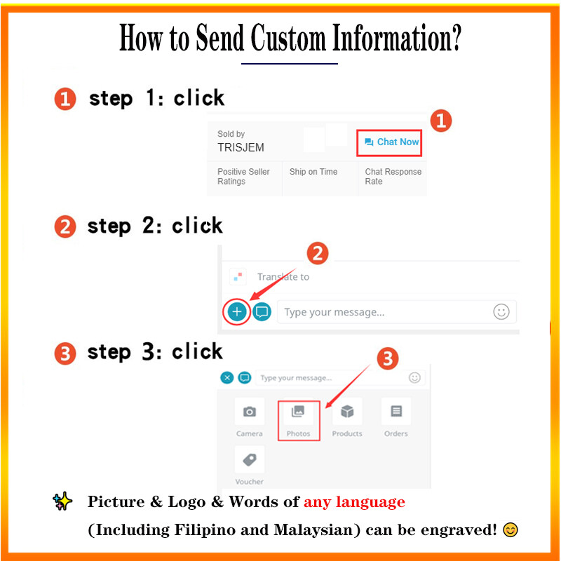 Picture & Logo & Words of any language (Including Filipino and Malaysian) can be engraved!