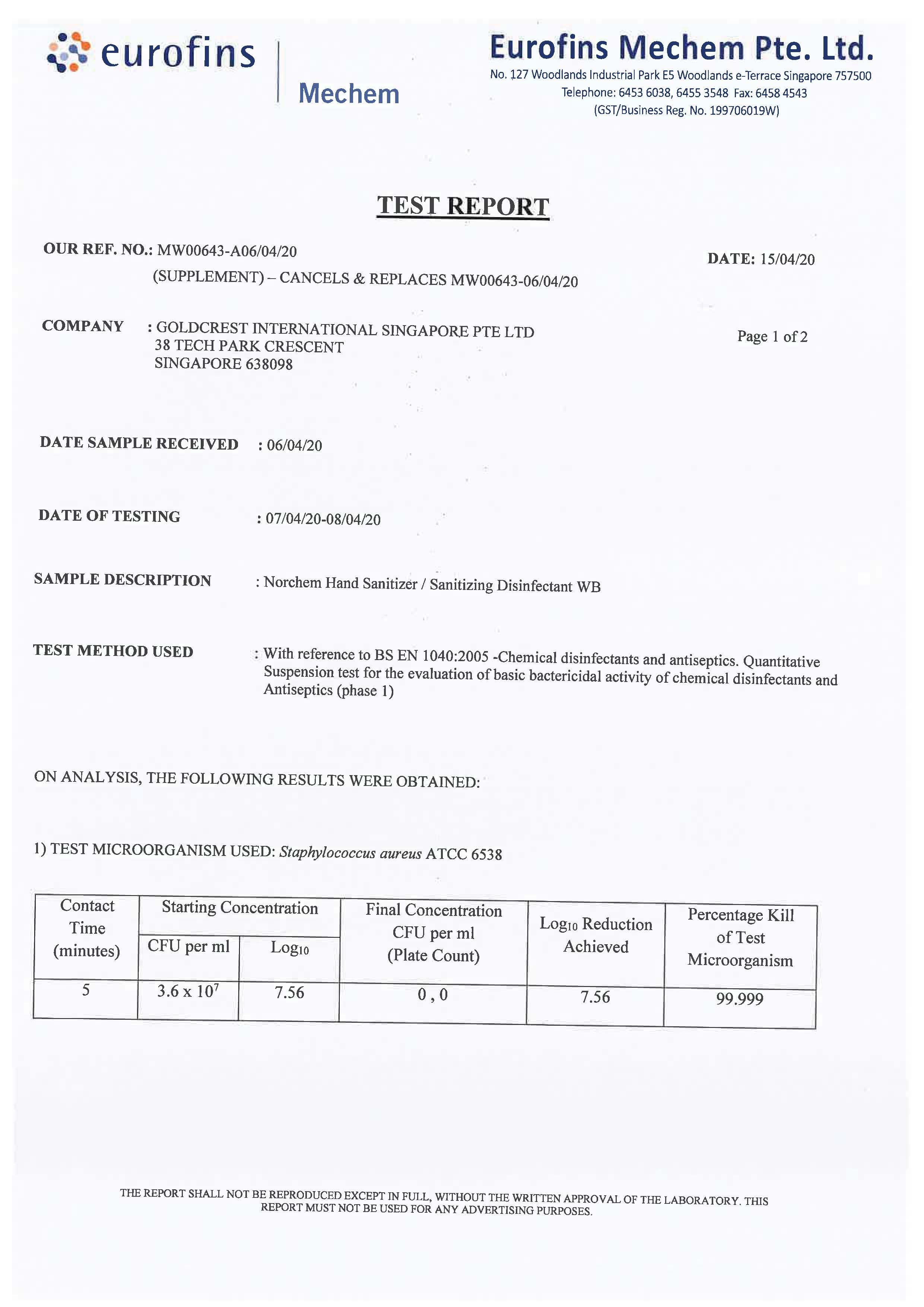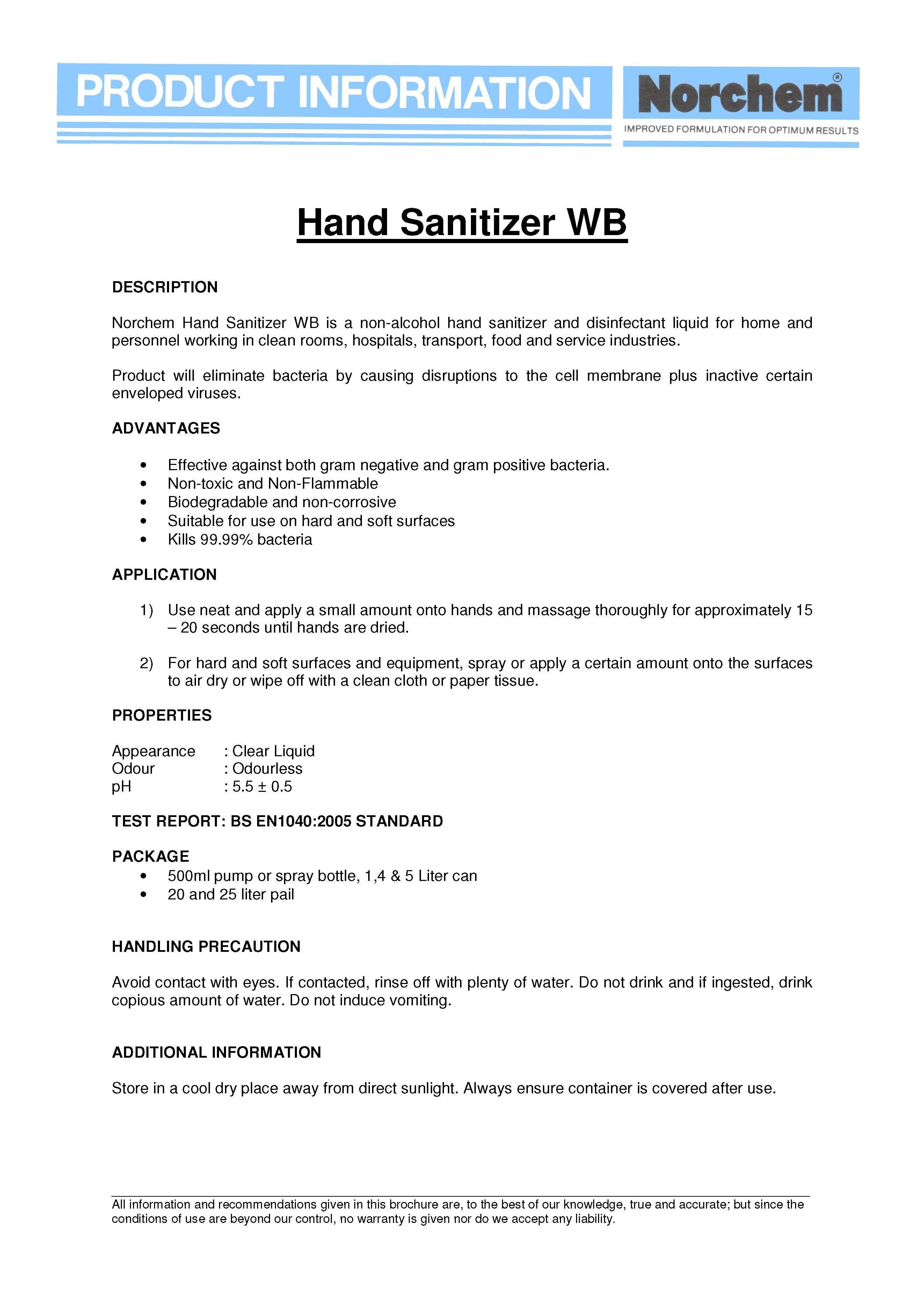 Norchem Non Alcohol Hand Sanitizer WB 5L