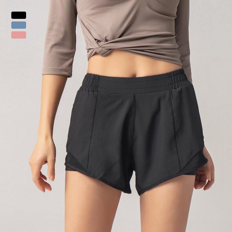 Summer Fashion Women Fitness Leggings Ladies Shorts Double-Layer Quick-Drying Gym Running Yoga Sports Shorts Casual Solid Color Short Pants Beach Skirt