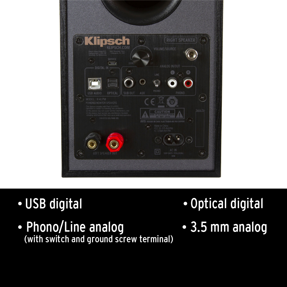 Klipsch R-41PM Active Bluetooth Bookshelf Speaker + Klipsch SPL-100 Subwoofer (Soundbar Alternative For TV)