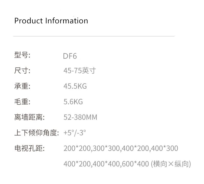 North Bayou DF7 Ergonomics Interactive Fixed TV Wall Mount Bracket Ultrathin Fit 45" To 75" LCD LED Flat Panel