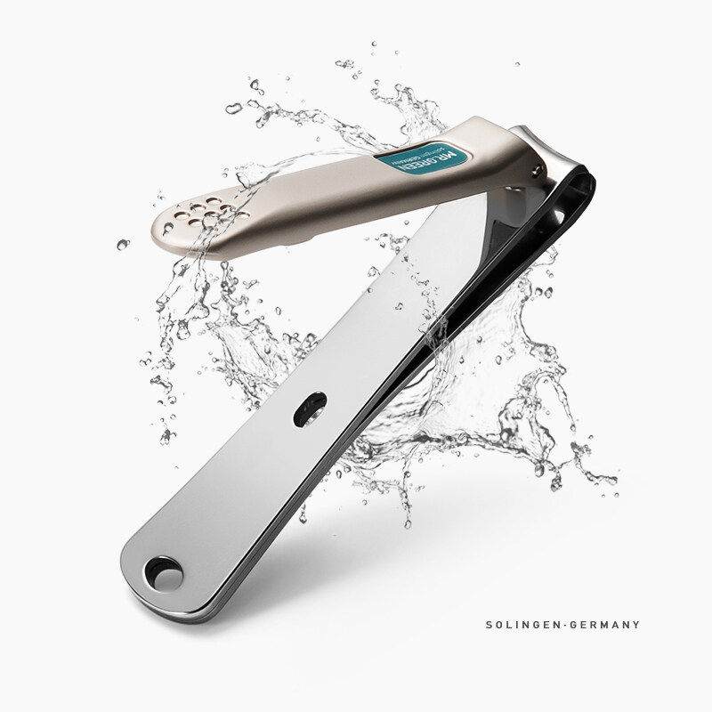 MR-1113 series nail clipper:1. Practical, beautiful and ergonomic excellent design, combined with advanced German manufacturing technology, once the product came out, it has been the most popular product in the whole industry.2. Malpositioned blade design, as well as Cross-bolt reinforcement, can be called a revolution in durability, making this nail clipper, long-lasting sharp and durable.3. High grade stainless steel with zinc alloy nickel plating process,excellent anti-rust ability,it has outstanding texture and hand feel, let you have outstanding manicure experience.