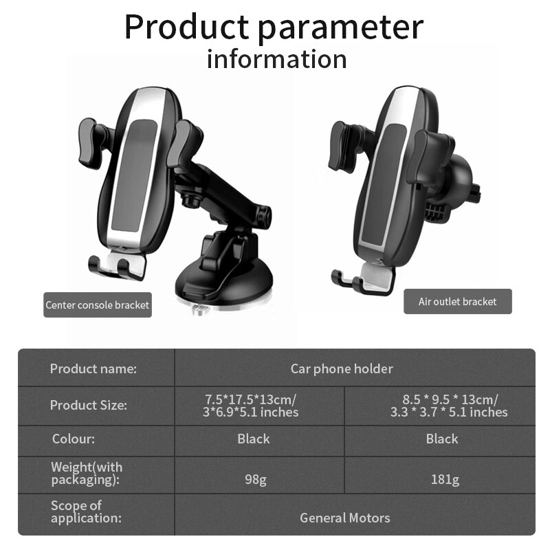 1. Lightweight design, suitable for 3-7 inch mobile phones. There are 2 type can be installed on the dashboard, or air outlet (tips: this mobile phone holder can be used at home)