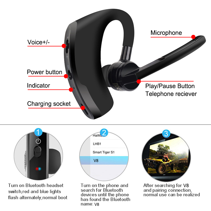 4. Compatible with mainstream smart phones such as iPhone, Samsung, Huawei, LG, HTC, Android, etc., working time up to 8 hours, standby time 200 hours, 1.5 hours fast charging, 10 meters / 30 feet range.