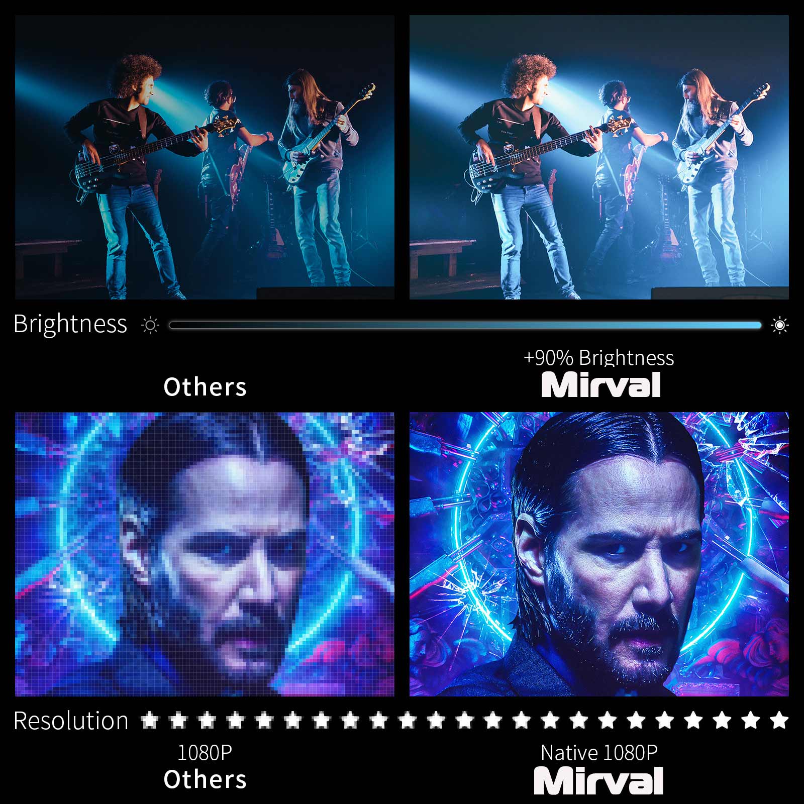 【Full HD 1080P】Mirval P1 Native 1080P Full HD 4K Projector Portable Beamer 8500 Lumens Auto Keystone Home Cinema Classroom Office