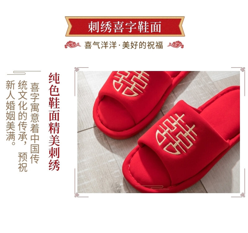 Wedding Slippers Festive Couple's Red Autumn and Winter Indoor Cotton Slippers Female Dowry Wedding Supplies