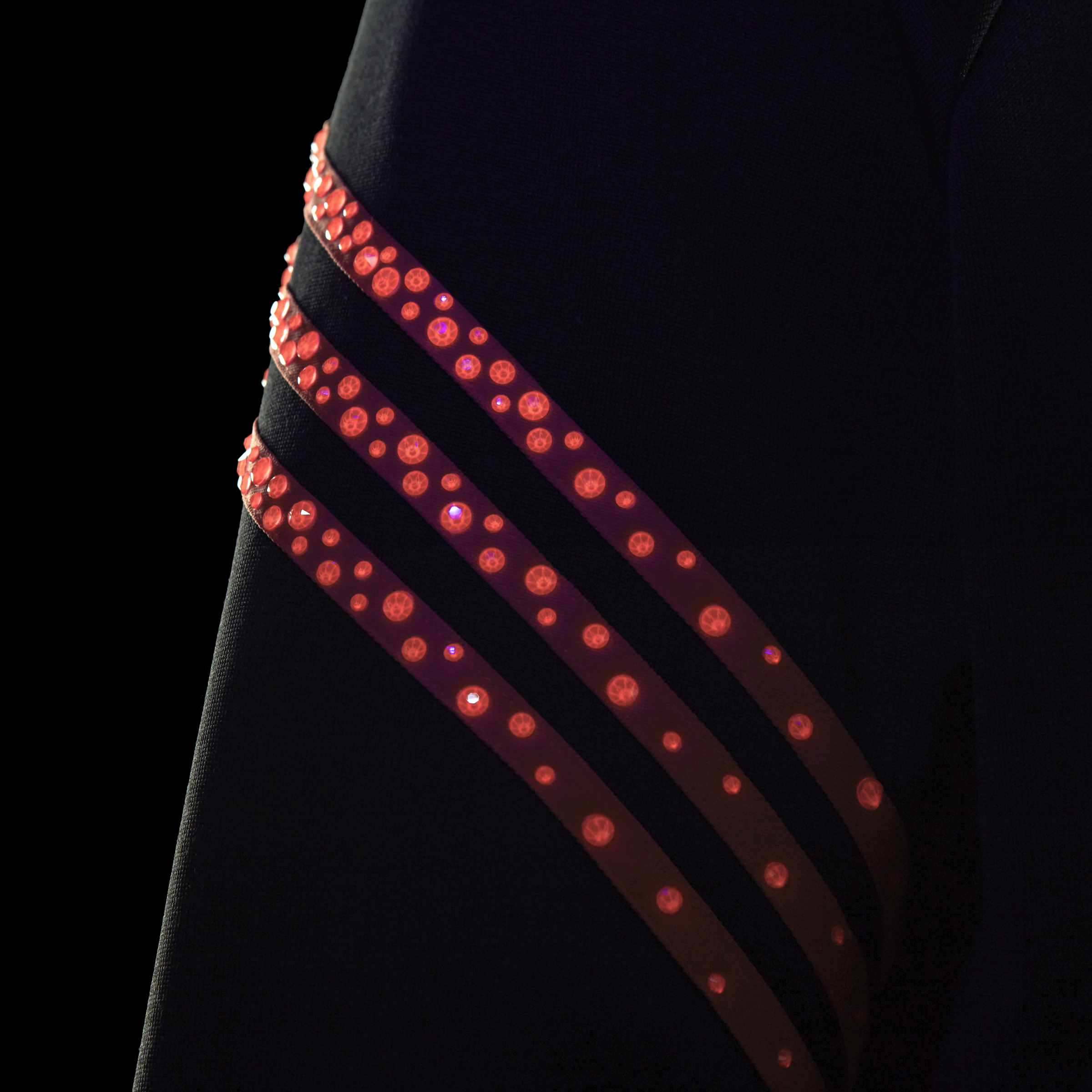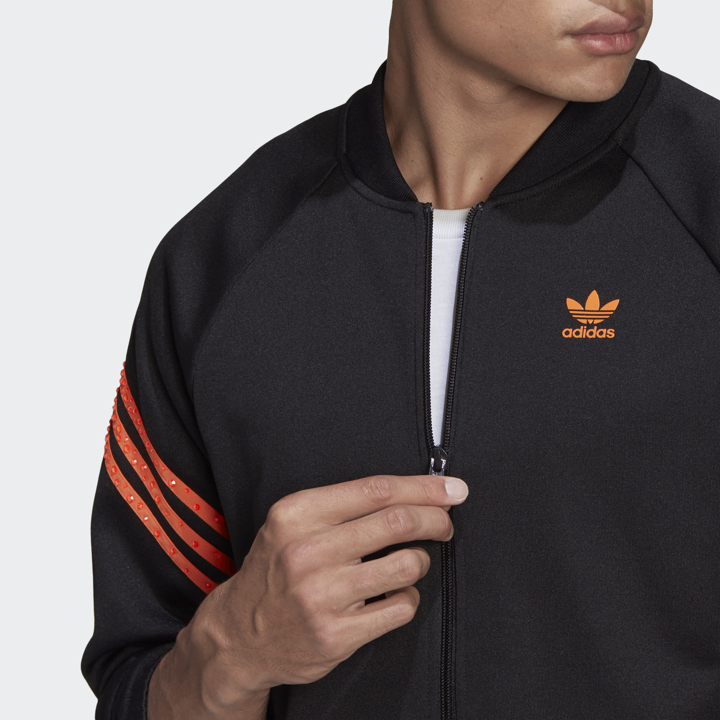 Small details, big impact. Which is exactly what this adidas track top has. In collaboration with Swarovski, the bold layer stands out with crystals that glow under UV light on the iconic 3-Stripes. Literally, it's time to shine.