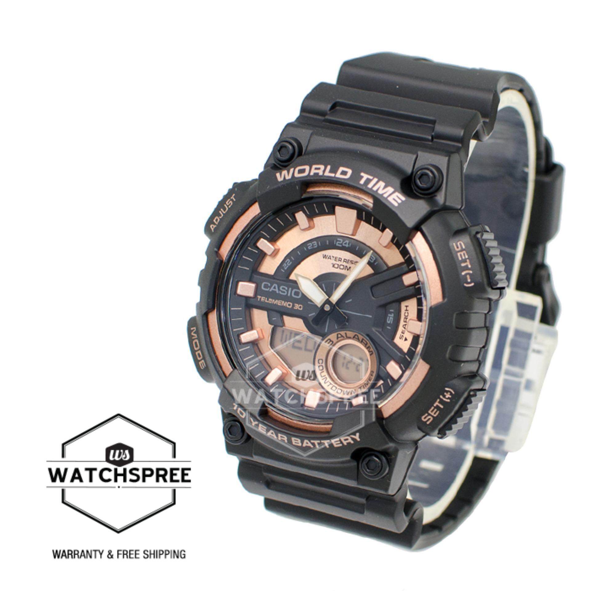 [Watchspree] Casio Men's Standard Analog Digital Black Resin Band Watch AEQ110W-1A3 AEQ-110W-1A3