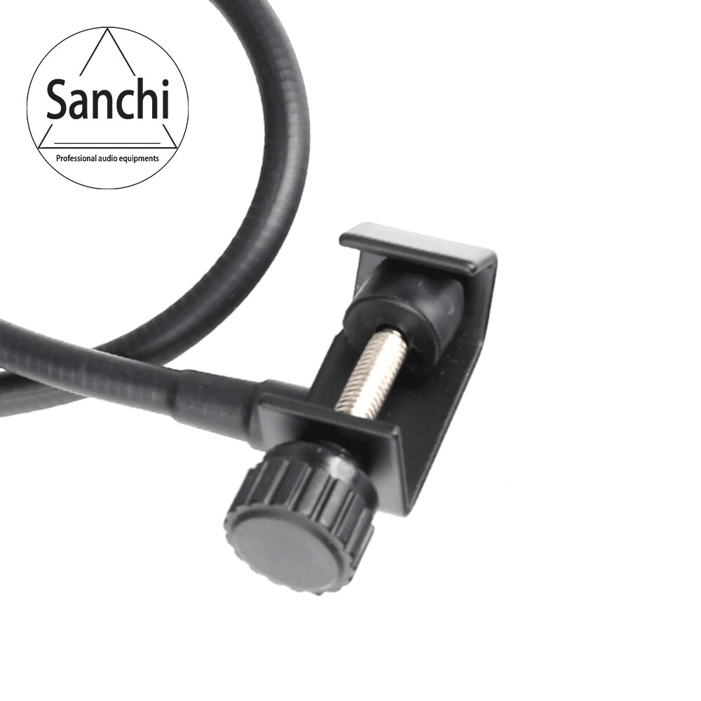 New metal screen mini pop filter, equipped with adjustable gooseneck and universal mounting plate for straight microphone stands.