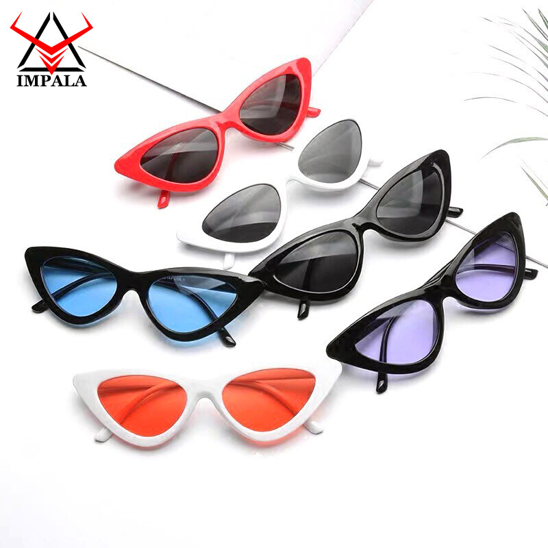 IMPALA QT1804W Fashion Women Cat Eye Sunglasses for Female Korean Style Anti Glare Beach glasses Vintage Retro Small Lens Cateye Sun Glasses Brand Designer Colorful Eyewear