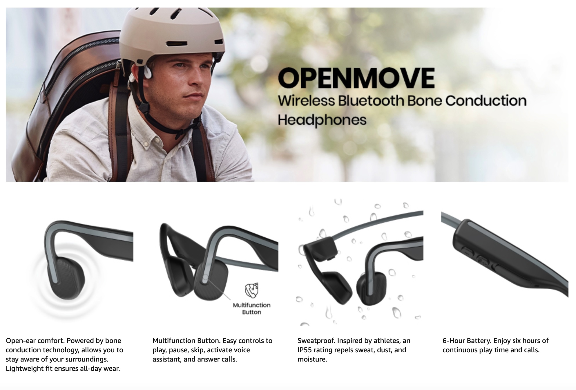Aftershockz OpenMove Bone Conduction Wireless Earphones