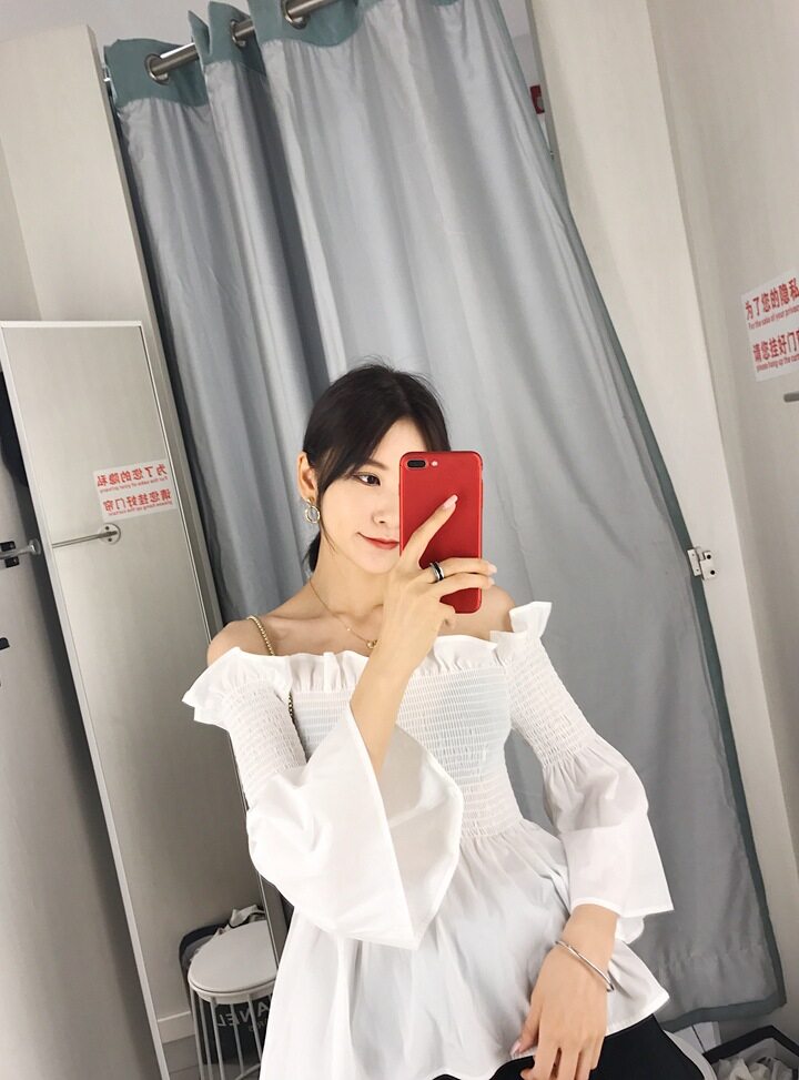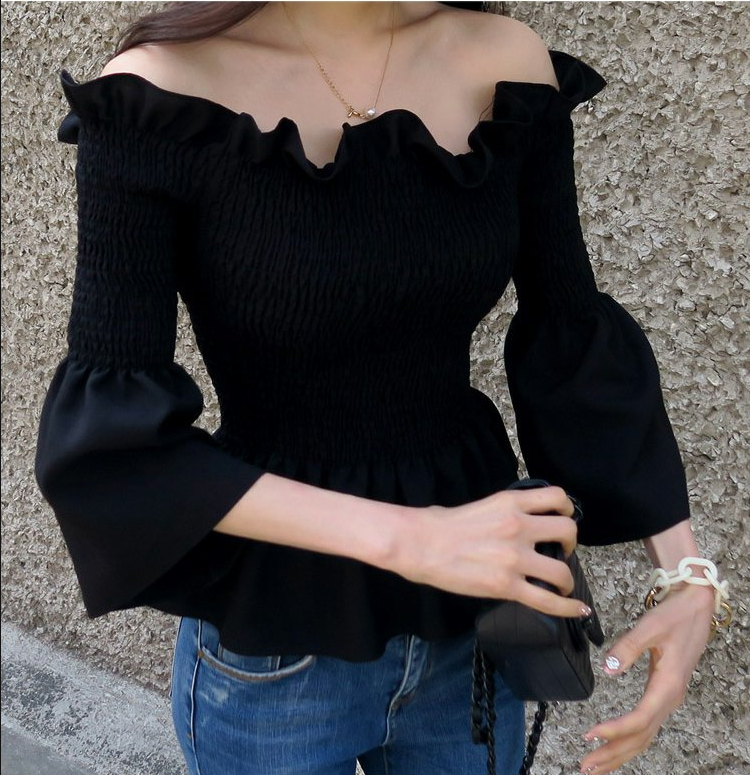 EDQRDQ Womens Smocked Off The Shoulder Tops Summer Flared Bell Sleeve Chiffon Blouses T-Shirt