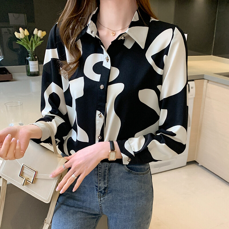 AFEG new women's long-sleeved printed chiffon elegant blouse for women