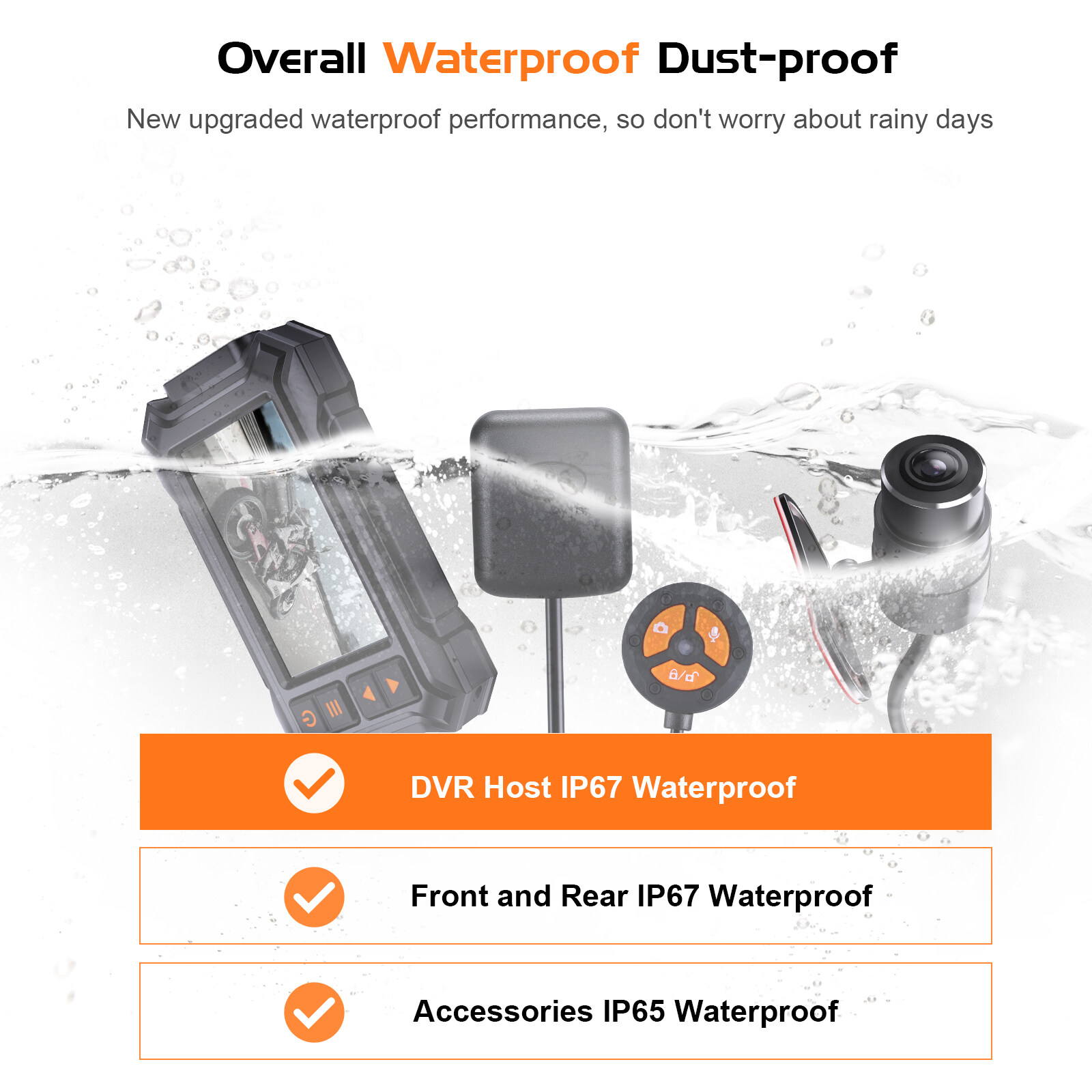 Specifications: Chipset:JL5701 Sensor:Double GC2063(6G) Wide lens: Front/Rear lens: 150 degree Video format: MOV/MP4 Image format: JPEG Screen:3.0 IPS WiFi: Support GPS tracking: Support G-Sensor: Support Motion detection: Support Microphone: Yes Speaker: Yes Super capacitor: Yes Manually lock file: Yes Loop recording: Yes Power:5V 2.0A Operating temperature: 5°F~158°F Storage temperature: -4°F ~176°F Support languages: Simplified Chinese/Traditional Chinese/ Japanese English/Russian and so on