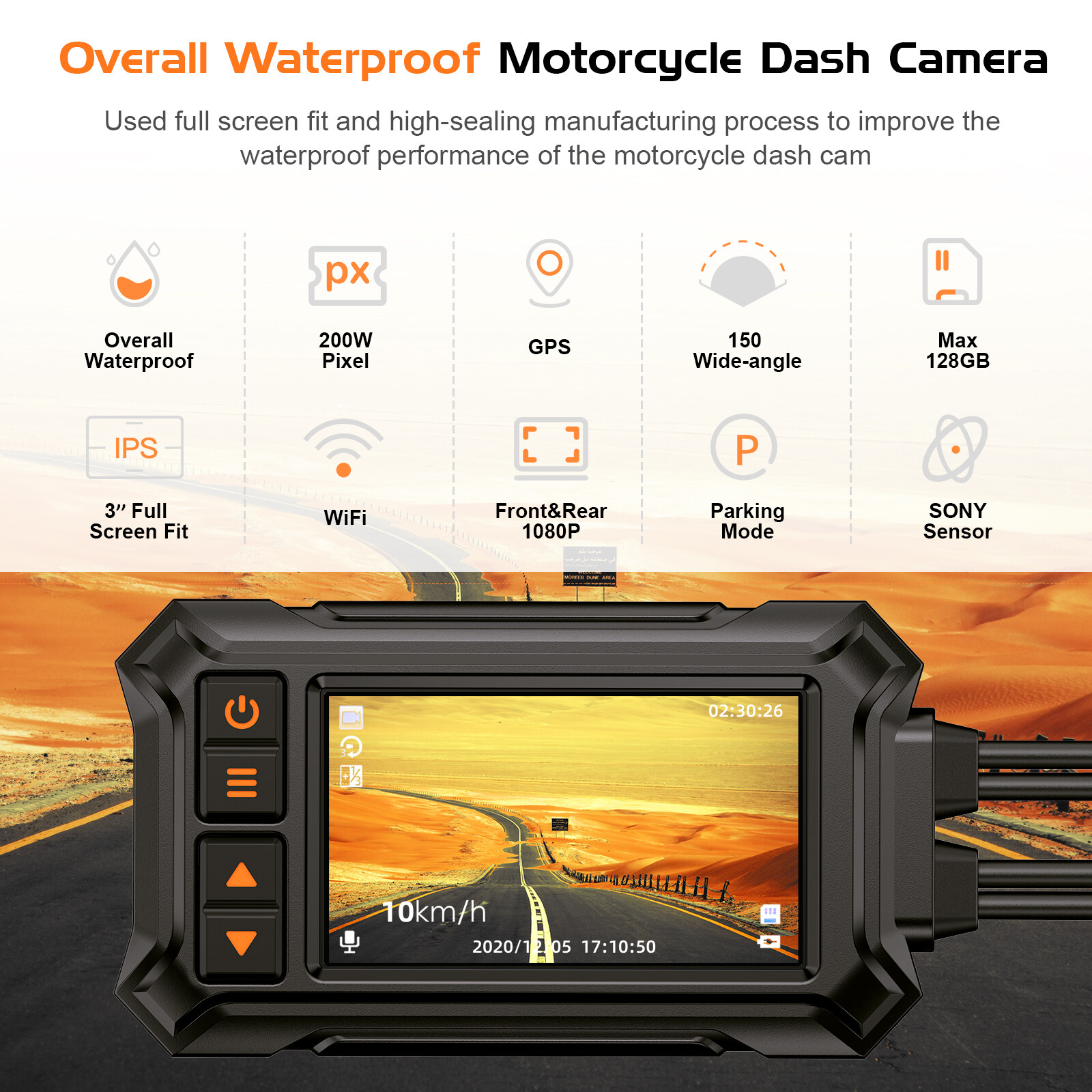 【Optional Freebies】Blueskysea A12 Motorcycle WIFI Camera Driver Recorder, 1080P Dual Lens Motorbike Dash Cam Waterproof with Built-in GPS, Remote, Loop Recording