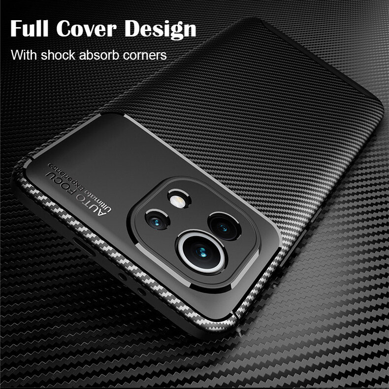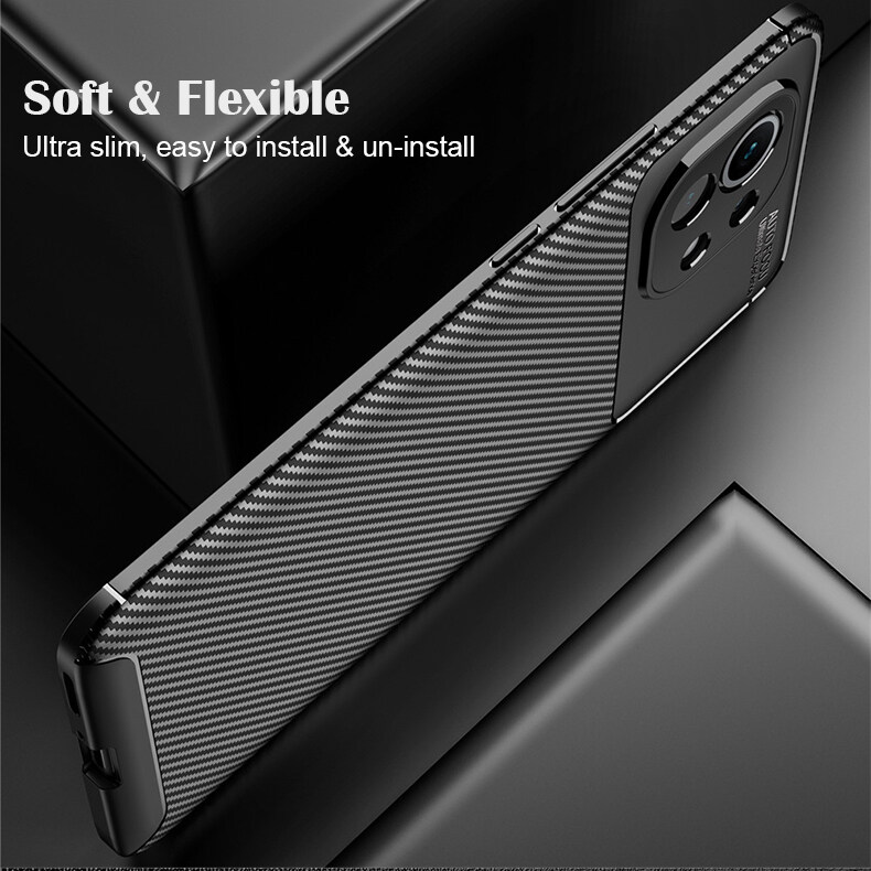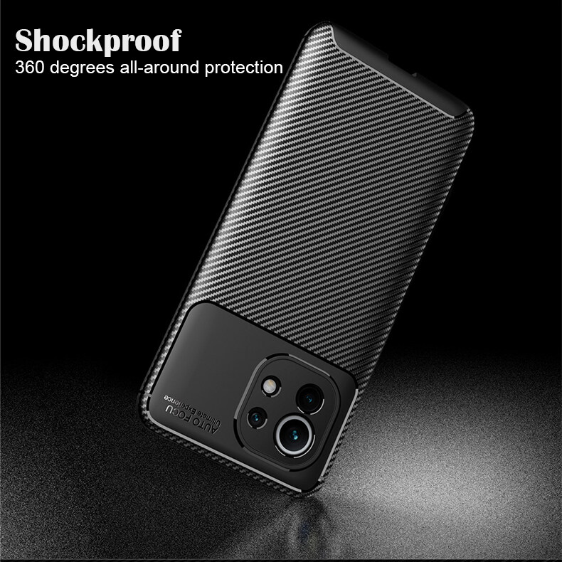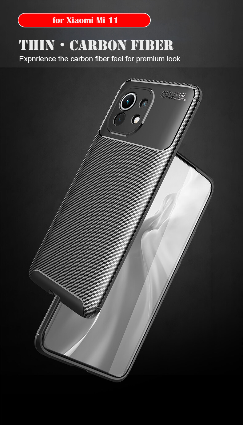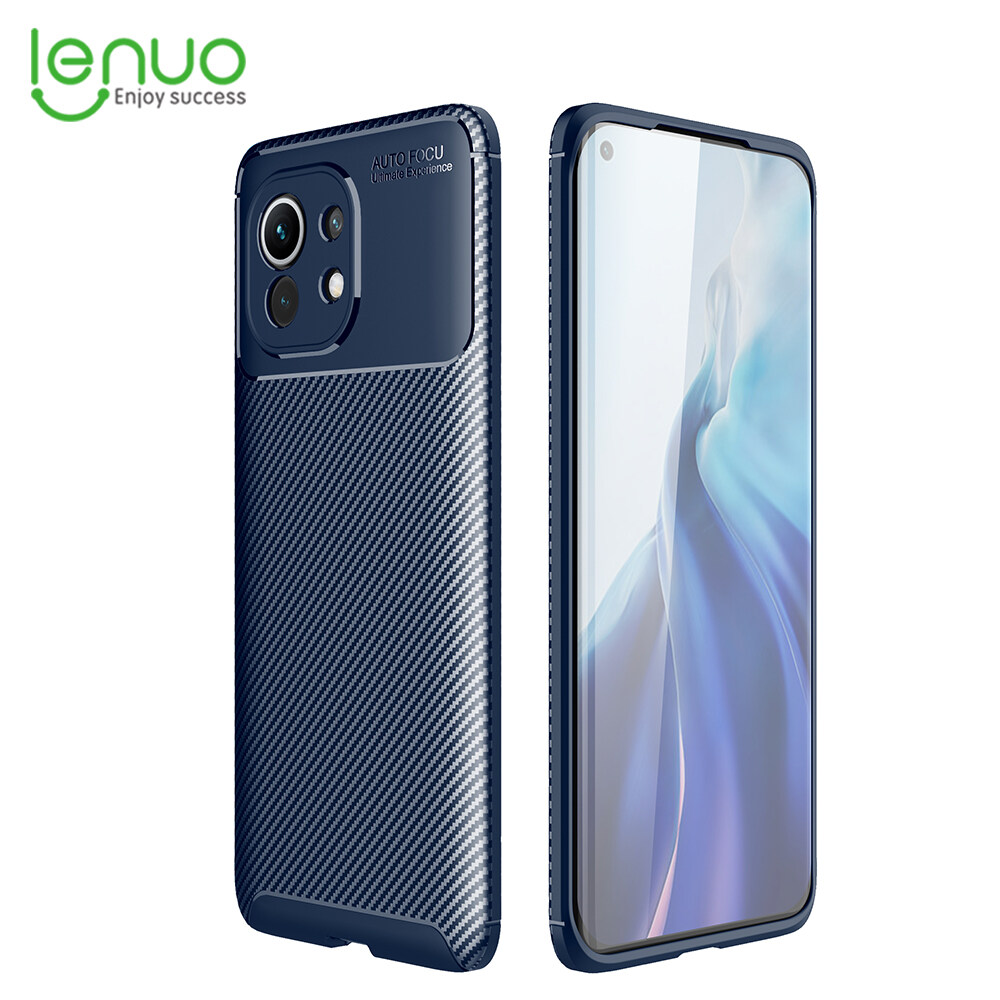 Lenuo for Xiaomi Mi 11 / Mi 11 Ultra / Mi 11 Pro / Mi 11 Lite Case - TPU Carbon Fiber Shockproof Anti-scratch Matte Cellphone Back Cover Phone Case
