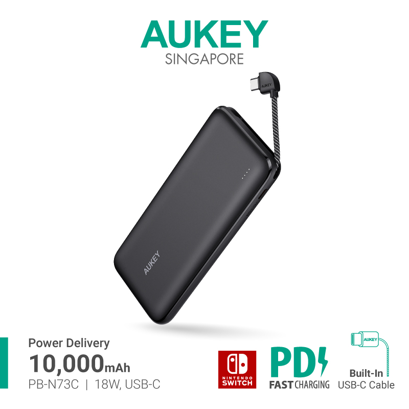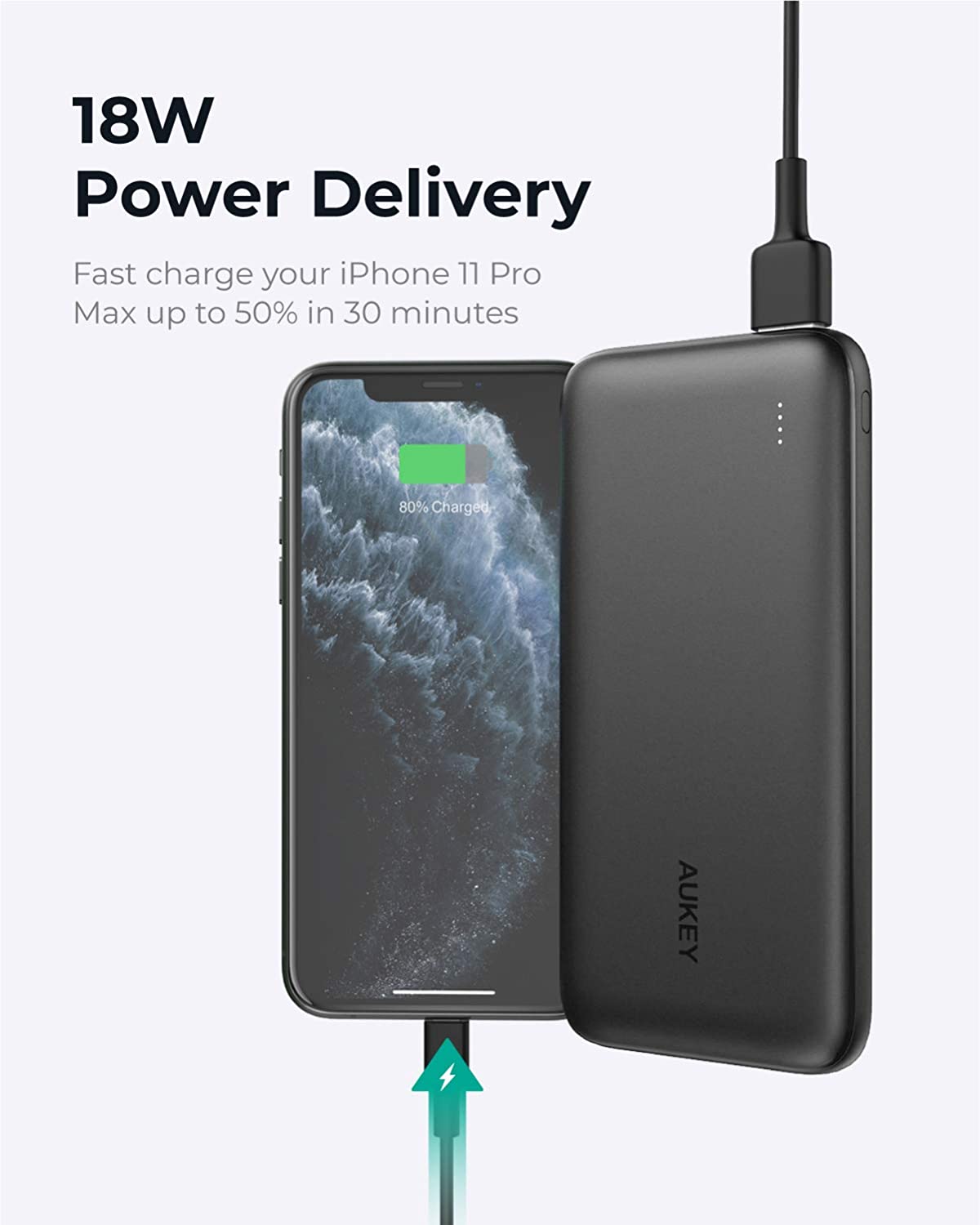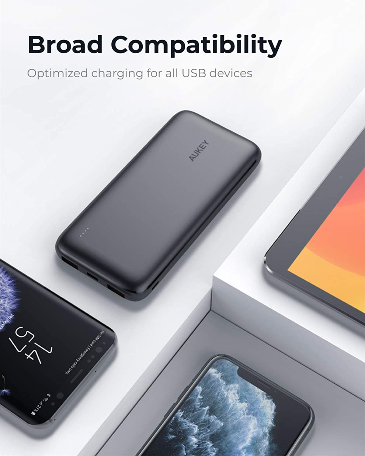 Aukey PB-N73/PB-N73C Ultra Thin Portable Charger 10000mAH 3-Port USB C PD 12W / 18W Fast Charge Power Bank (18 Months Warranty)