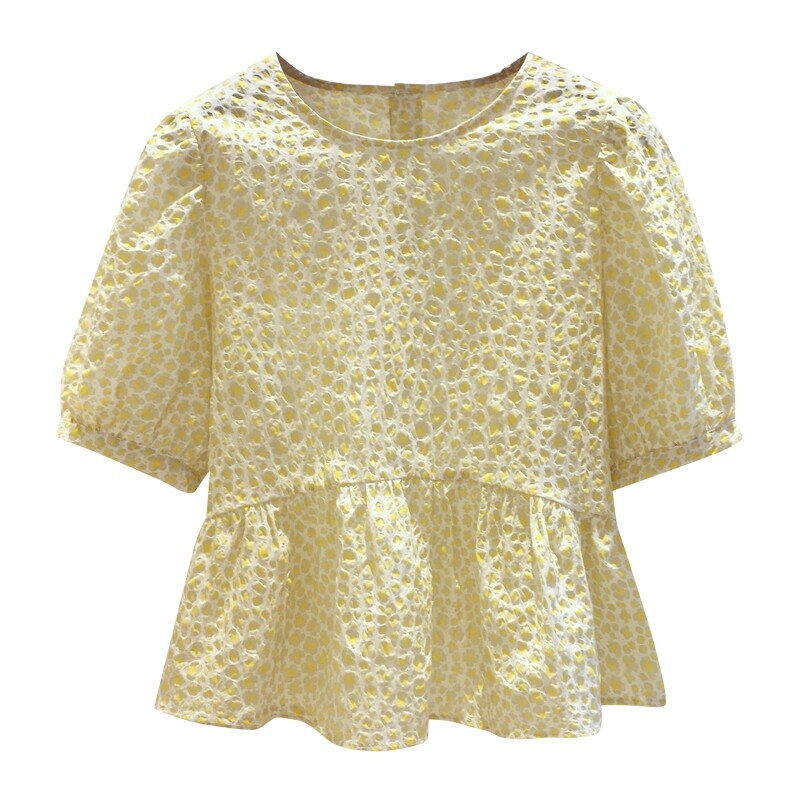 AFEG new Korean round neck fashion all-match polka dot short-sleeved blouse for women
