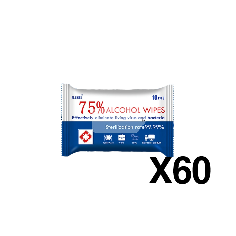 [Value Pack] 10 pcs x 60 pack 75% Alcohol Wet Wipes Disinfectant Disinfection Disposable Wipe Travel Size Portable Anti-bacterial Cleaning Phone Sterilization Hand Sanitizer Cleansing Antiseptic | Sin