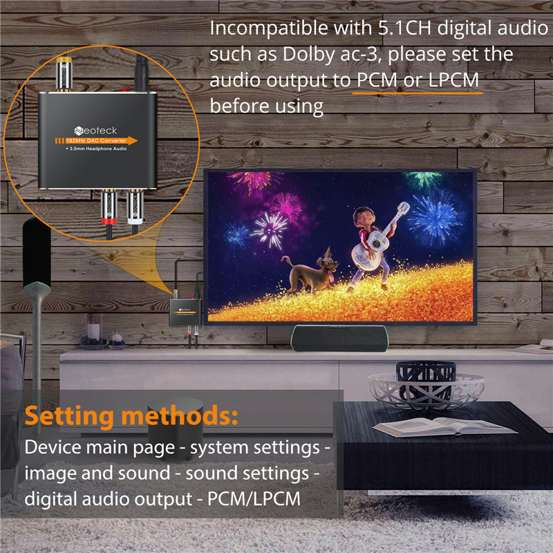 • It is Incompatible with 5.1 Channel Signal Such as Dolby AC3, Please Set the Audio Output to PCM or LPCM before Using