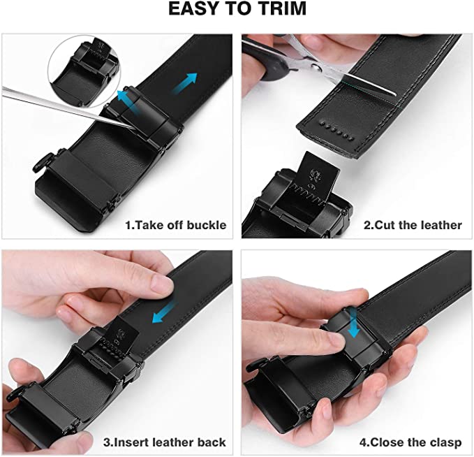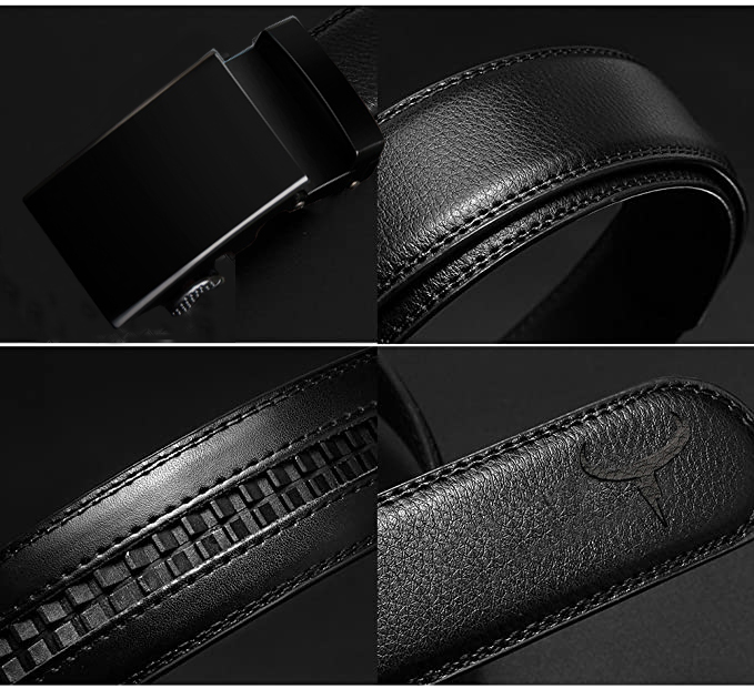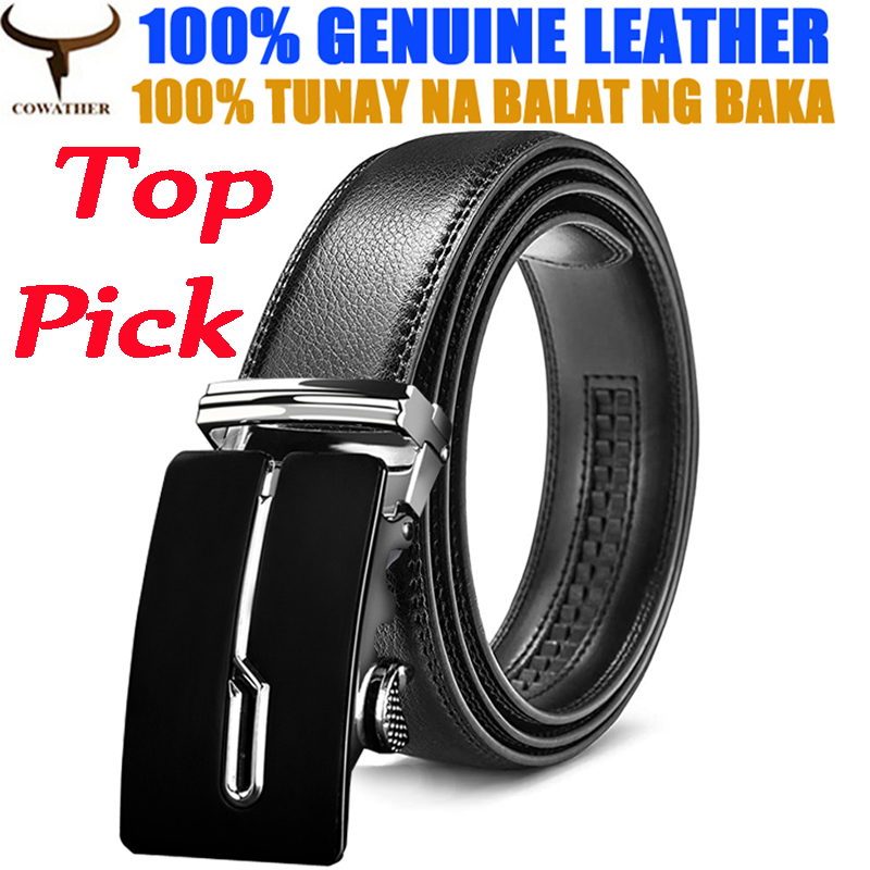 COWATHER Men Ratchet 3.5cm Leather Dress Belts with Genuine Cow Leather Slide Casual Belt for Men with Metal Automatic Lock Buckle, Fashion, Classic, Dress, Casual, Everyday Durable Belts
