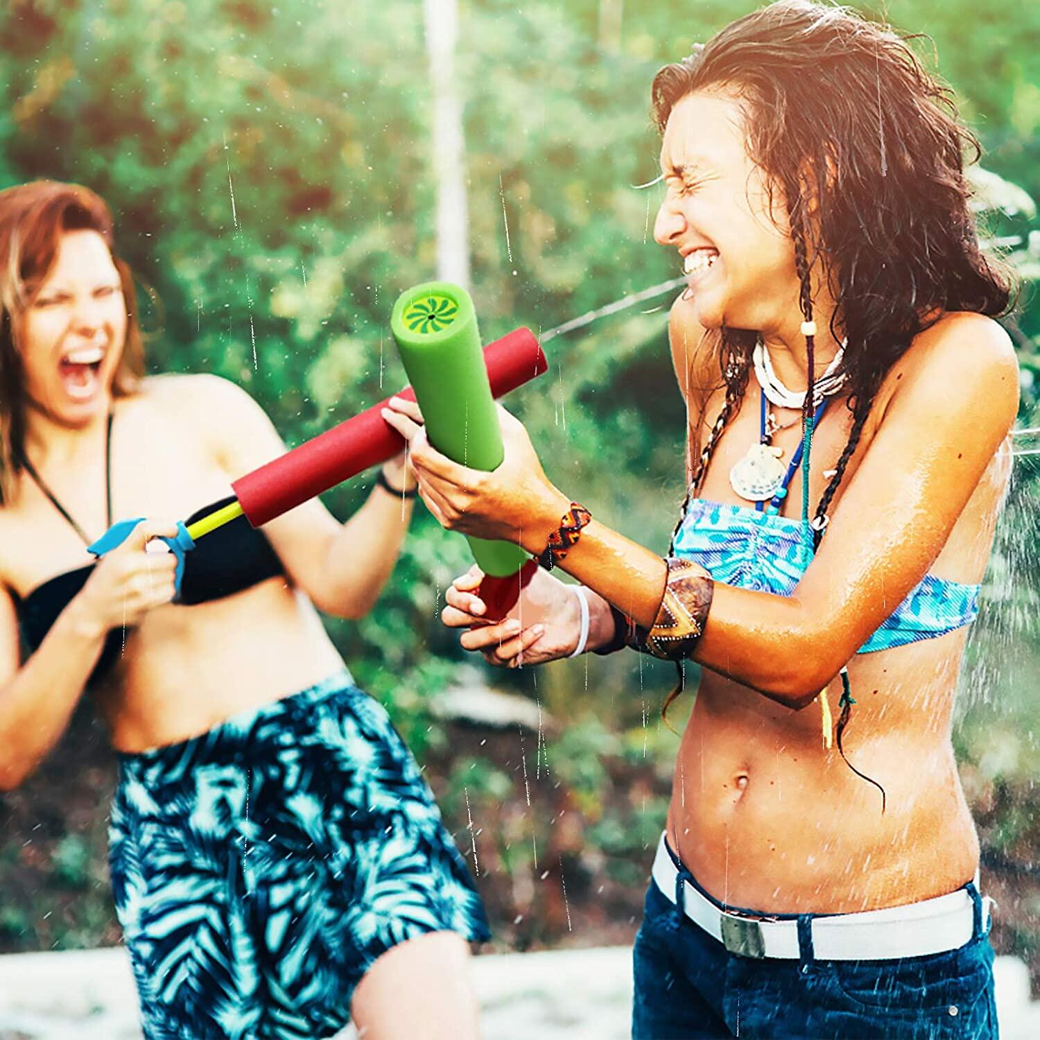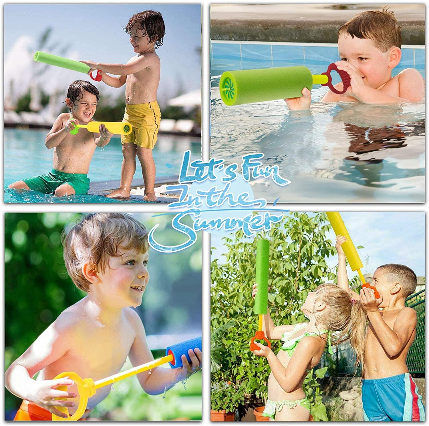 Just put the Foam Water Toy' s head into the water, pull the handle, the water toy barrel will suck in water, when shooting, push the handle to spray the water. It' s easy to use!