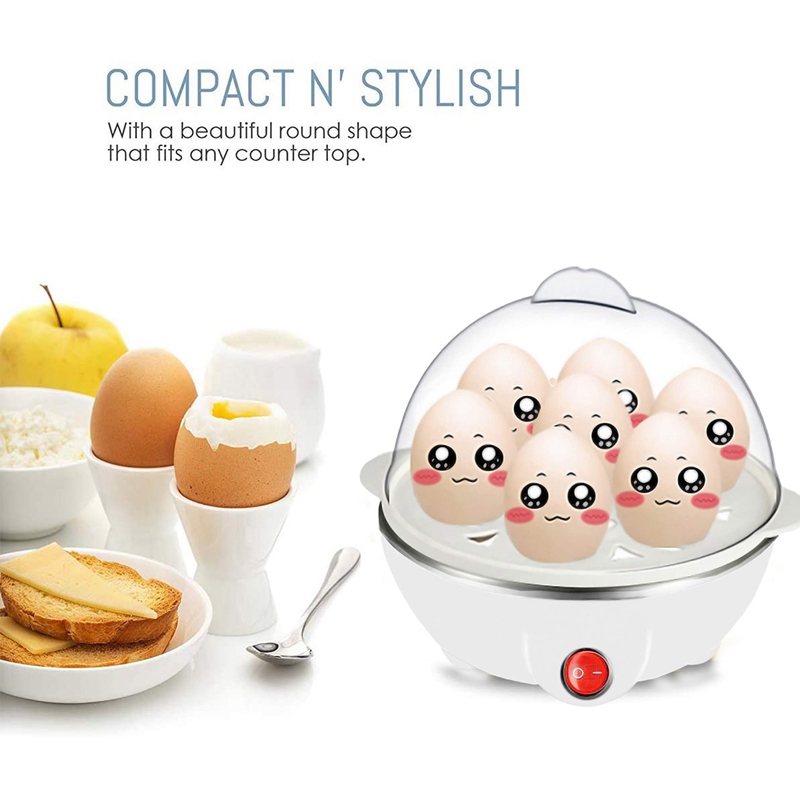[Large capacity egg cooker]: The egg cooker tray can hold 7 eggs. It can boil soft, medium or hard eggs, just change the amount of water, and let the egg cooker do the rest. It can make breakfast for 2-3 people.