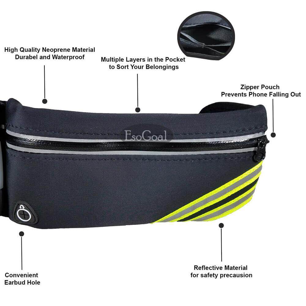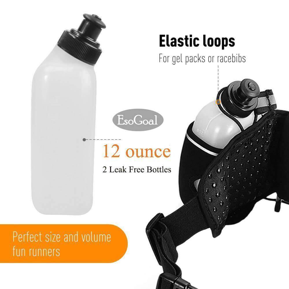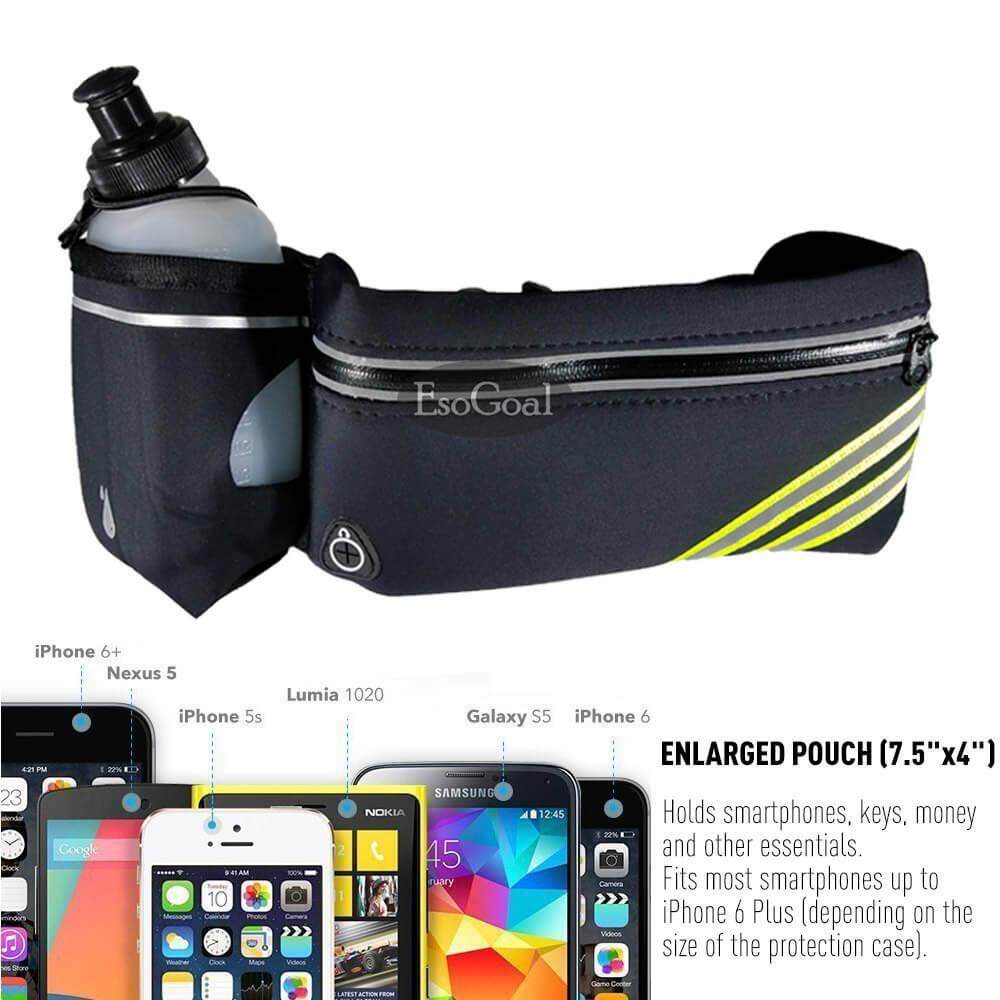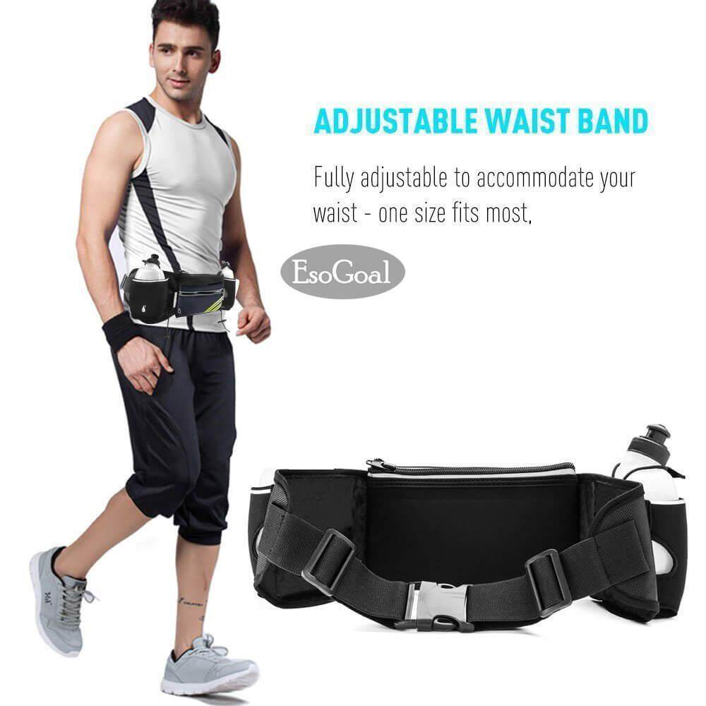 EsoGoal Running Belt with Water Bottle Waterproof Waist Pack for Men and Women Universal Size to Hold Cell Phone, Wallet, and Keys