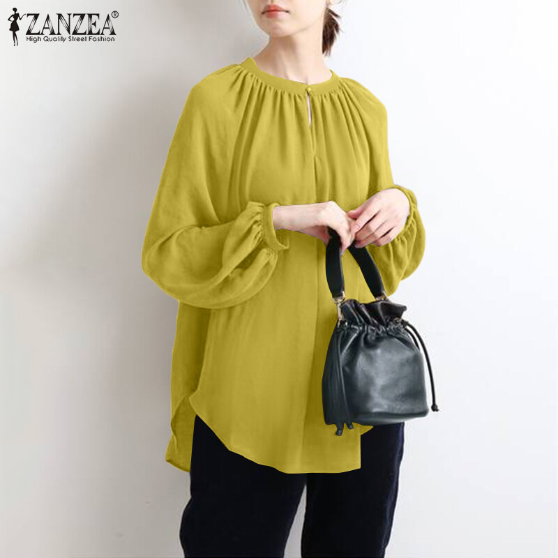 ZANZEA Womens Puff Sleeve Elastic Cuff High Low Top Casual Loose Shirt Blouse Plus Size
