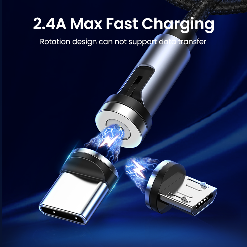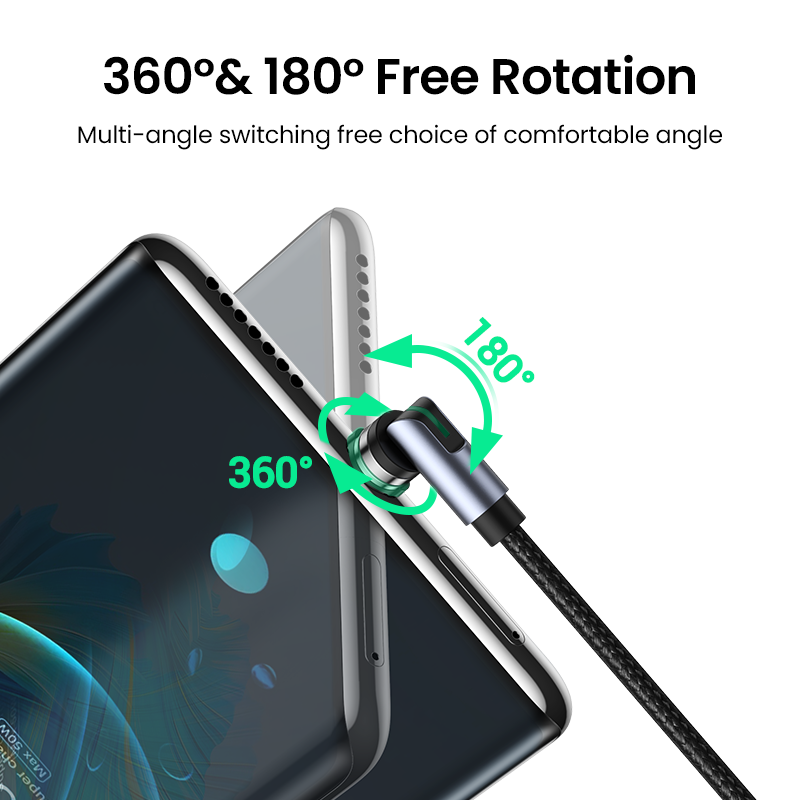 UGREEN 2.4A Max Fast Charging Type-C Cord Cellphone Charging Cable for Android Magnetic Free Rotation Round Straight Bendable Aluminum Braided Data Cable with Bendable Aluminum Shell