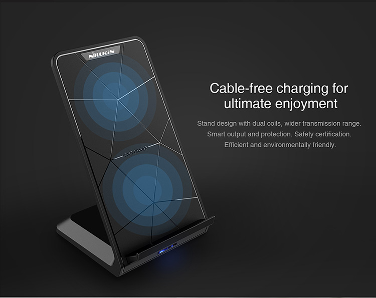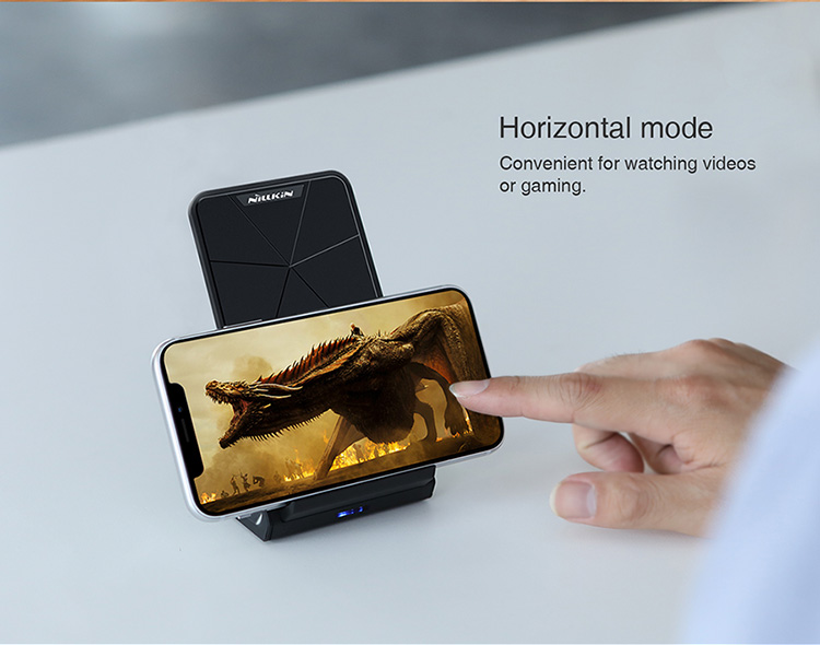 Nillkin 10W Fast Wireless Dual Coils Professional Smart Charging 60 Degree Stand 10W With Anti Slip Surface High Speed Cable Free Qi Iphone Samsung Vertical Live Video Chatting Call Zoom Watching Game