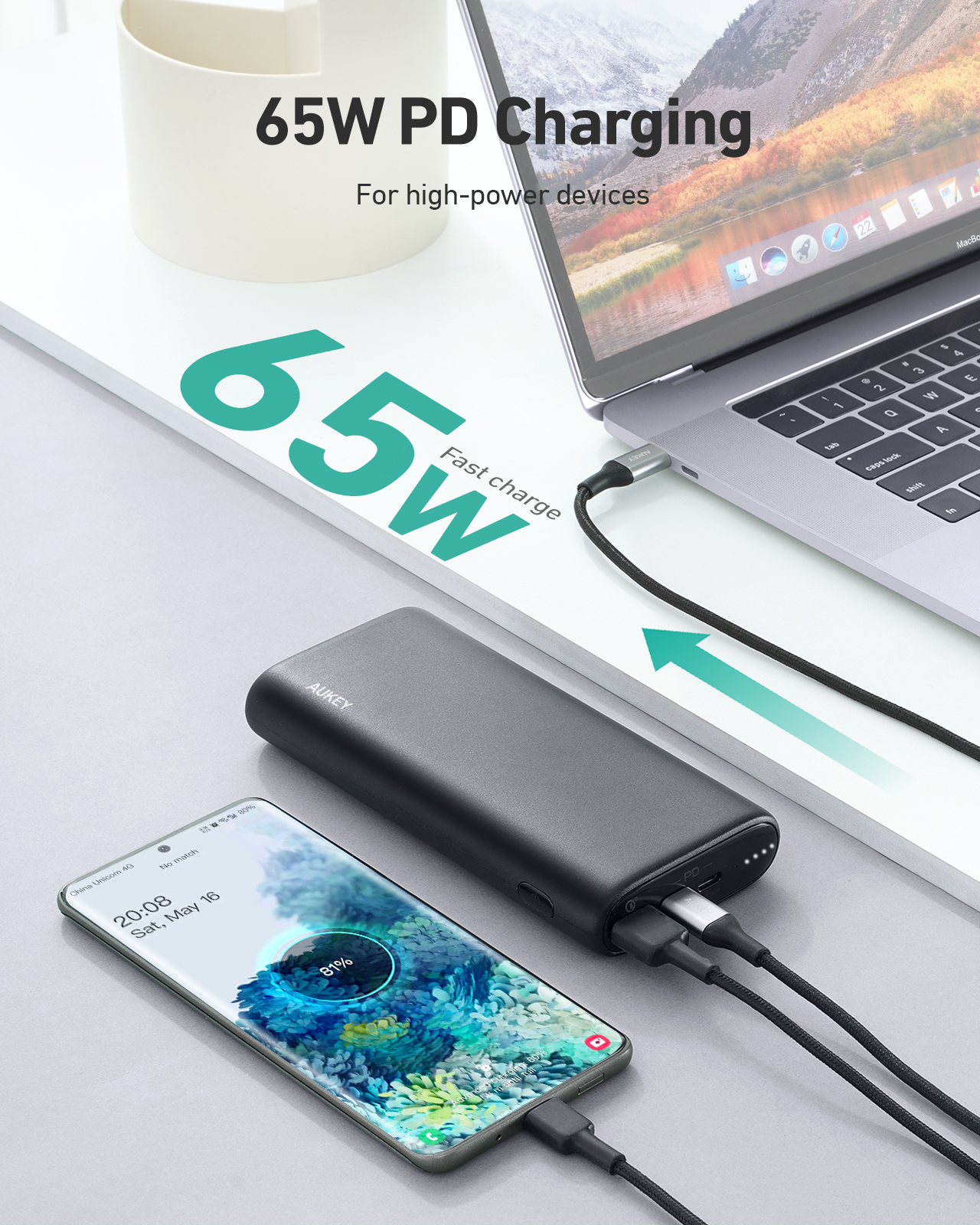 Aukey PB-Y37 20000mAh 65W PD Powerbank USB-C & USB-A, Fast Charge Portable charger for iPhone 12 11 Android Macbook Nintendo Switch (24 Months Warranty)