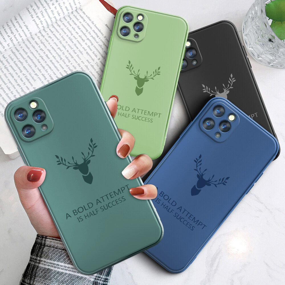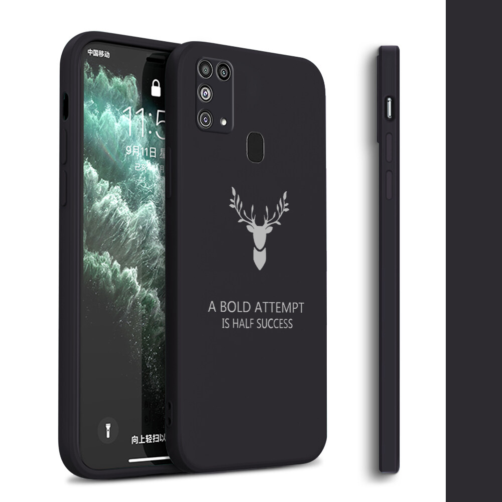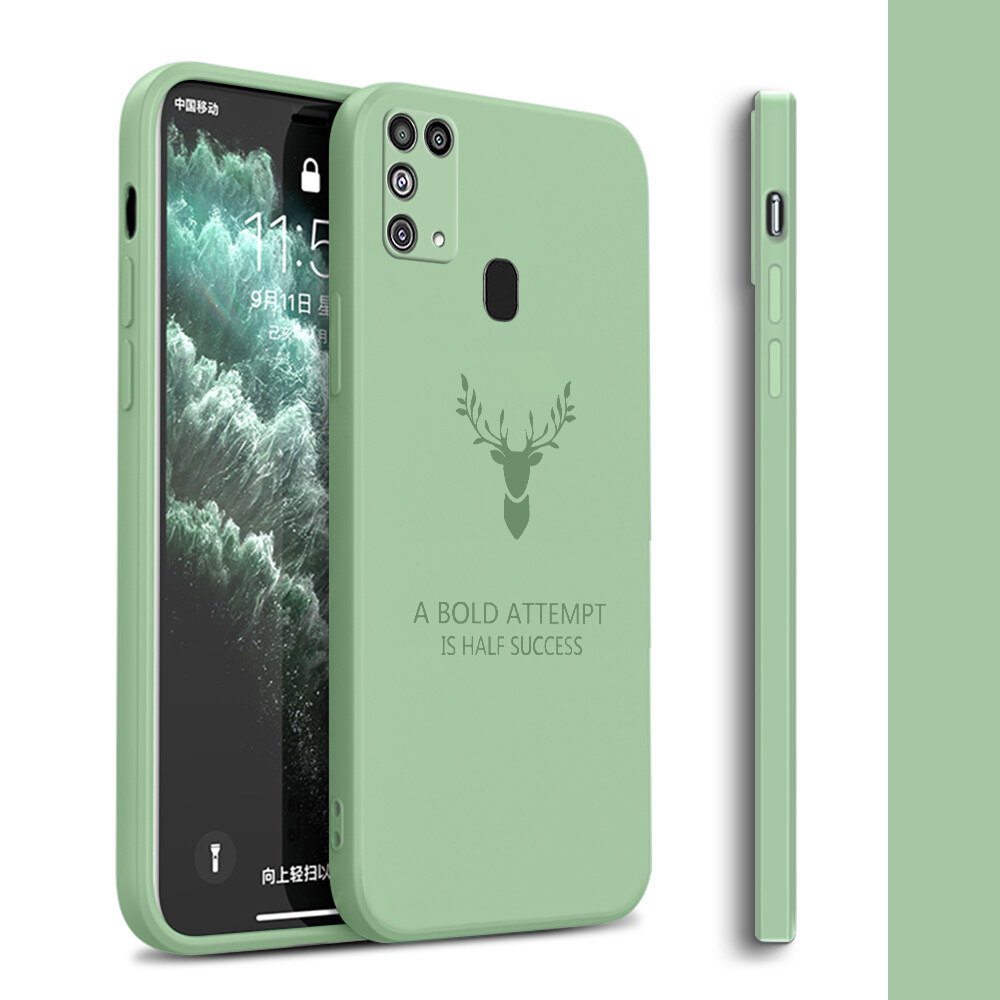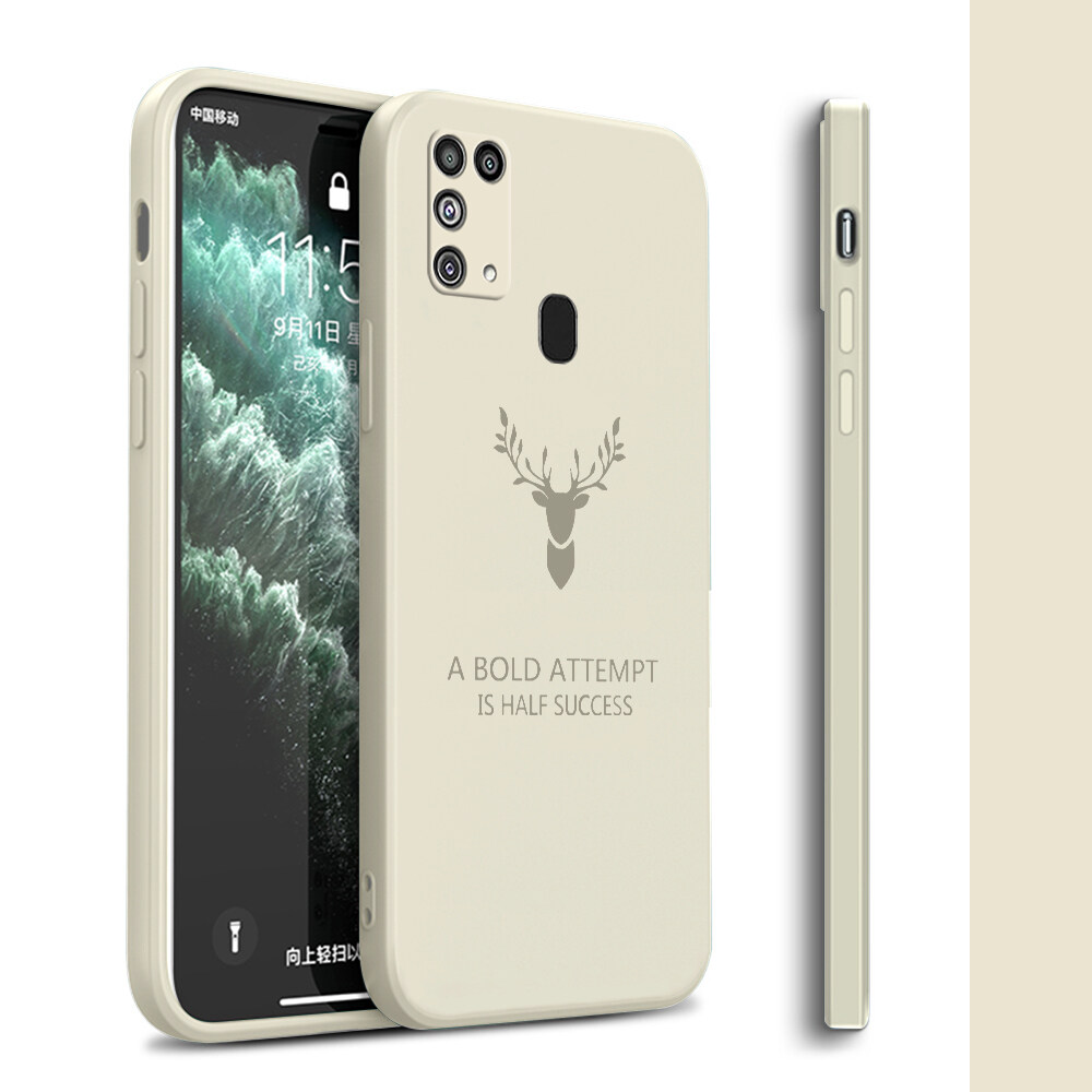 Hontinga Casing Case For Samsung Galaxy M31 Case Square Original Liquid Soft Silicone Deer Reindeer Full Cover Camera Protection Shockproof Cases Back Cover Phone Casing Softcase For Boys Girls Men Wo