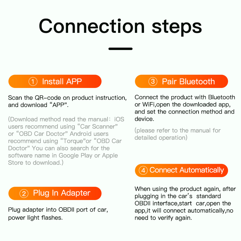 ELM327 V1.5 BT4.0 is mainly used to read the data of car engine and emissions, diagnostic car engine trouble, and erase trouble codes. It is small size, highest chip integration, Passed CE, FCC, and RoHS certification.ELM327 V1.5 BT4.0 Functions:Read diagnostic trouble codes, both generic and manufacturer-specific, and display their meaning (over 3000 generic code definitions in the database).Clear the error codes and turn off the MIL ("Check Engine" indicator)Displays current sensor data, including:Engine speed per minute (RPM)Calculated load valueCoolant temperatureFuel system statusVehicle speedShort-term fuel conditionLong-term fuel conditionIntake manifold pressureInjection advance timeIntake air temperatureAir Flow RateAbsolute throttle positionOxygen probe voltage associated with short-term fuel statusFuel system statusFuel pressureThere are many other data available for fuel consumption monitoring ...Software Platforms.1. Compatible softwareWindow versions: ScanMaster-ELM, ScanTool.net, PCMSCAN, etc.Android version: Torque, DashCommand, OBD Car Doctor, Auto Doctor, Mini OBDII, EOBD, etc.Symbian version: OBDScope. 2.2. Compatible PlatformsSoftware support platform: Windows XP, Windows 7/8/10, Android, Symbian, etc.