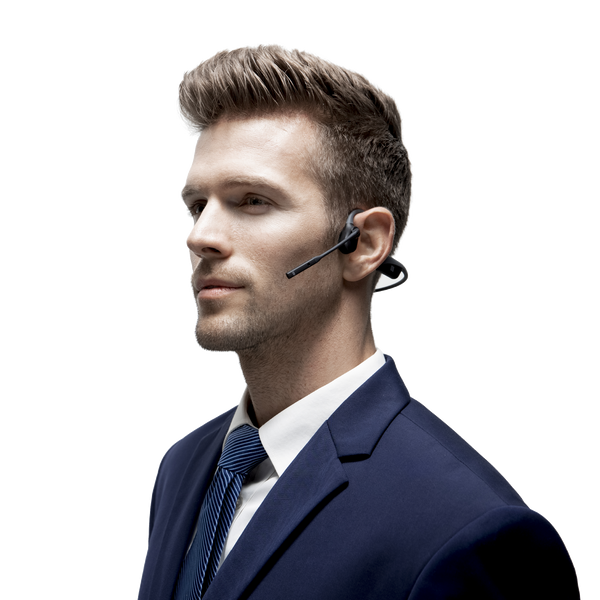 OpenComm features a lightweight, open-ear design powered by bone conduction tech for all-day comfort. Unlike traditional headsets, our wireless headset allows for communication & awareness in the workplace.