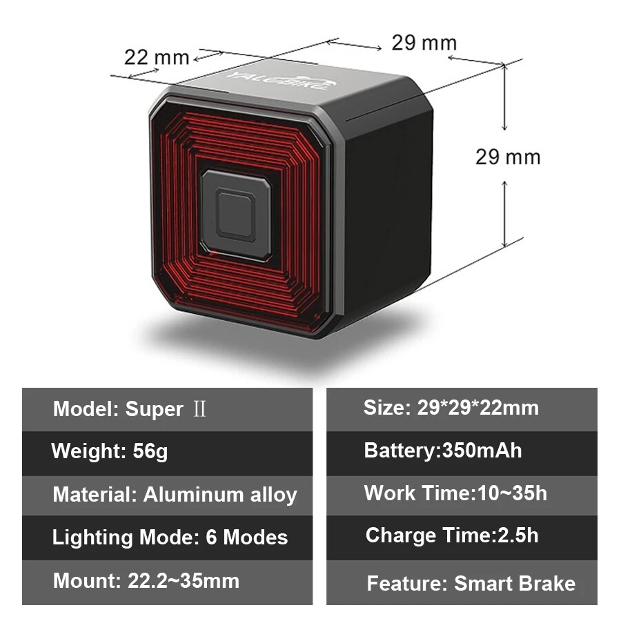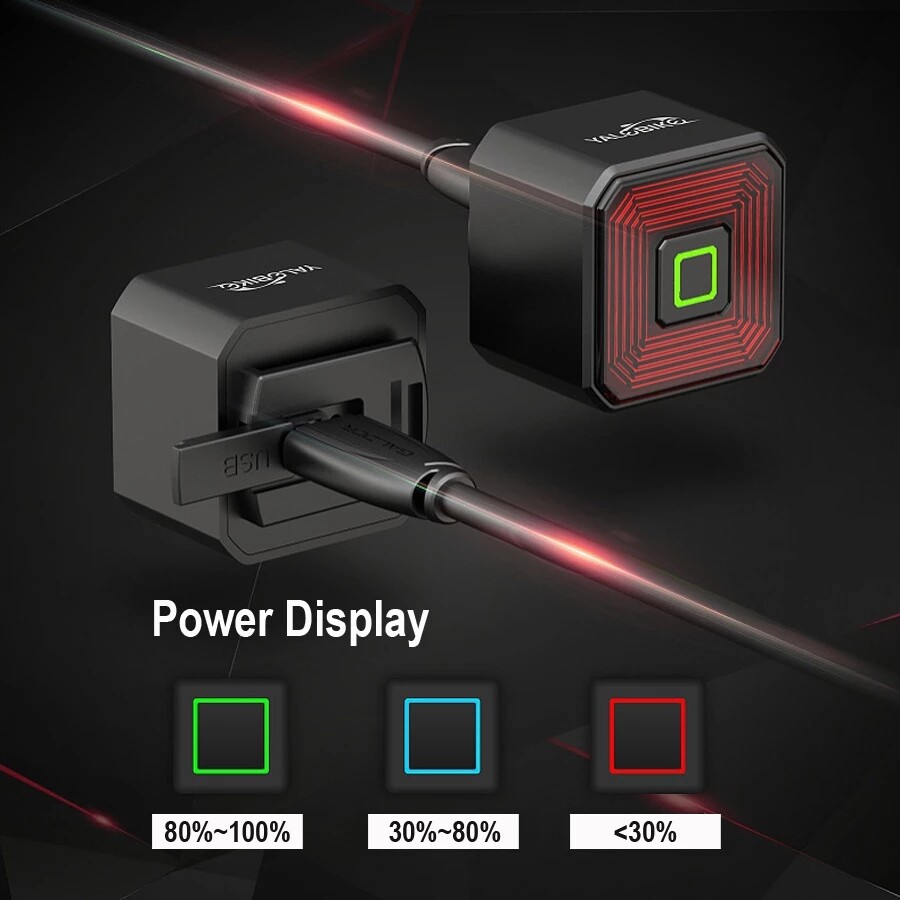 Equipped with a smart chip to ensures brake vibration detection. The bicycle light detects the braking and lights up at the highest brightness to call attention and enhance your safety. Lights up automatically at dusk and in tunnels. The cycling taillight turns off automatically when there is no vibration for 45 seconds, which saves time and effortH33ea3c1271d942628be2a183ab8b1fdaB.jpg