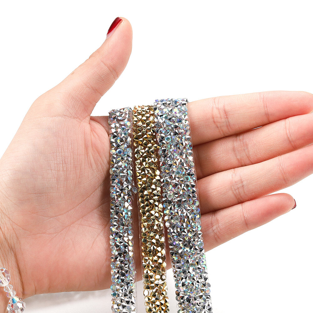 1 Yard 1.0-3.0mm Rhinestones Tape Banding Hotfix Strass Crystal Decoration Rhinestone Ribbon For DIY Woman Clothing Shoes Hats