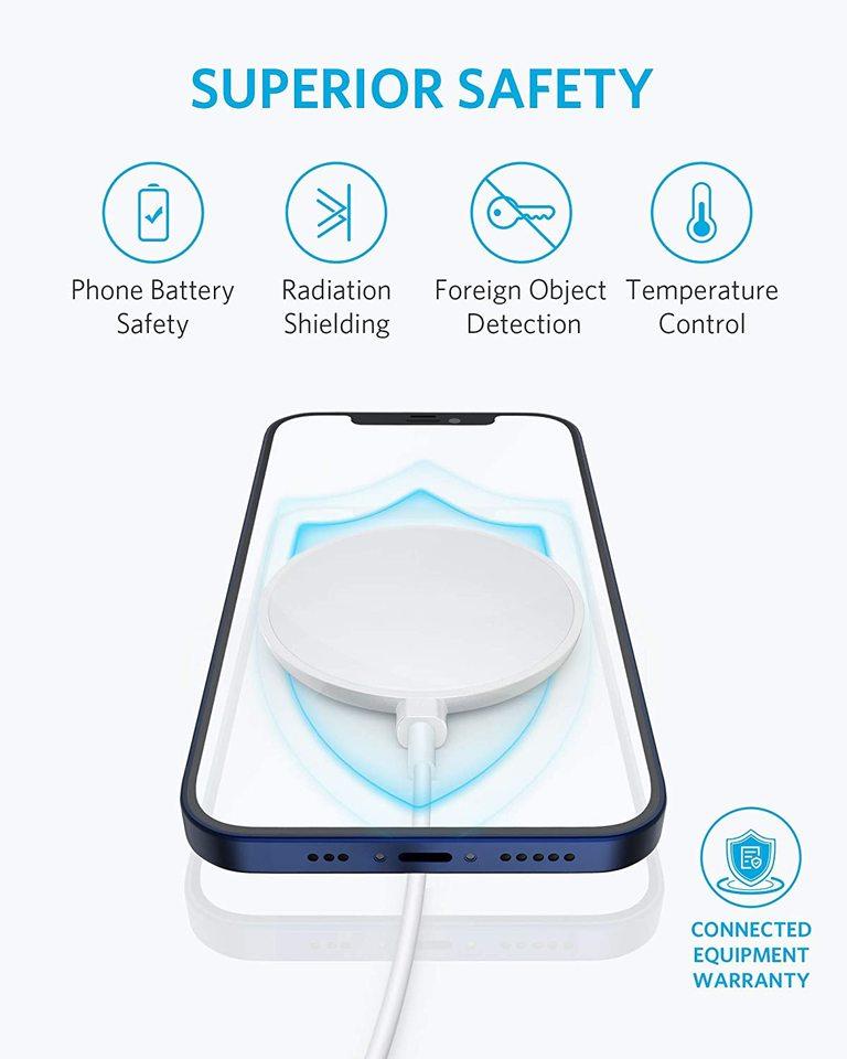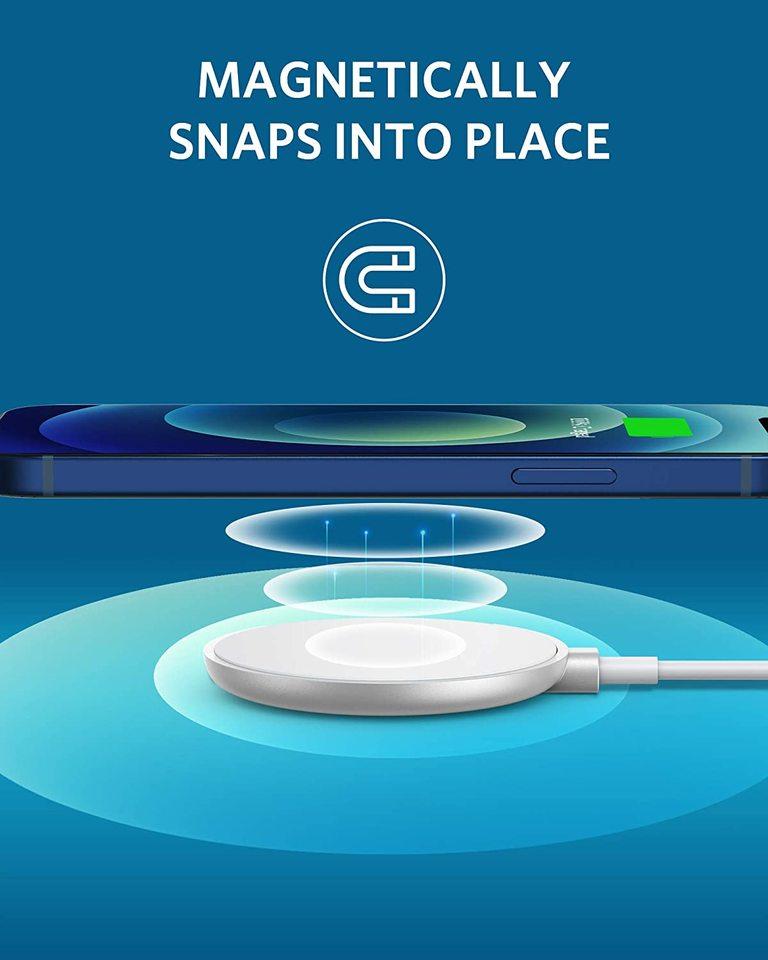 PowerWave’s magnetic design attaches quickly and securely to your iPhone 12’s wireless hotspot to deliver efficient and stable charging every time.