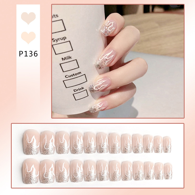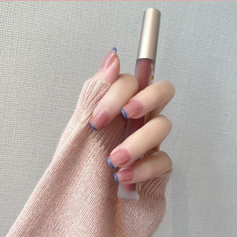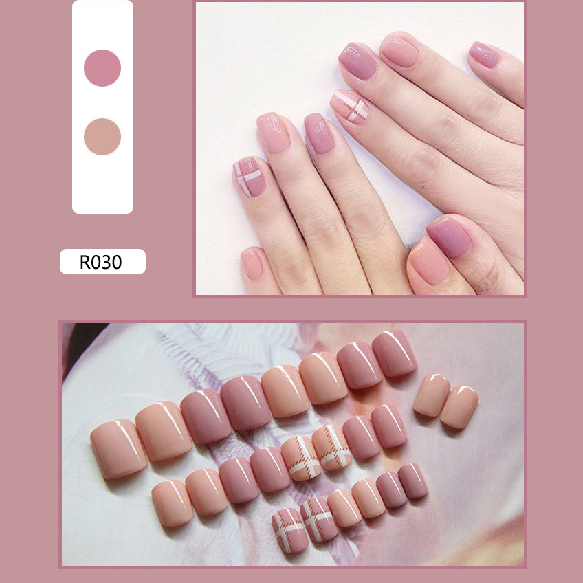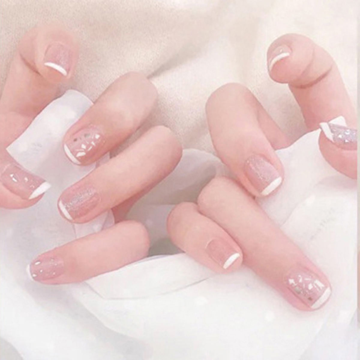 {DD Nail}24pcs False Nails French Nude Light Pink Short Square Press On Nail Full Cover Fake Nails Art For Women Press On Manicure Tips JP812