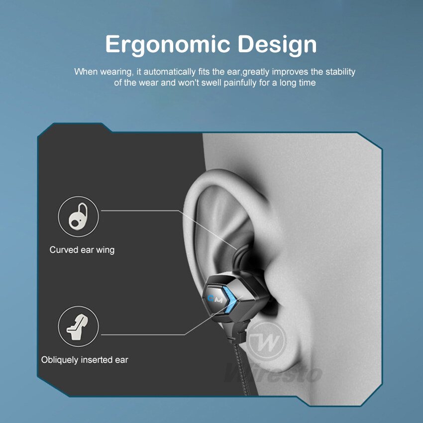 Wiresto Wired Gaming Earphones No Delay Deep Bass Gaming Headset In-Ear Earphone Gaming Headphone Earphones Earbuds Noise Reduction Headset with Mic Sport 3.5mm Aux For PUBG/Legends GAMING PC/Phone wi