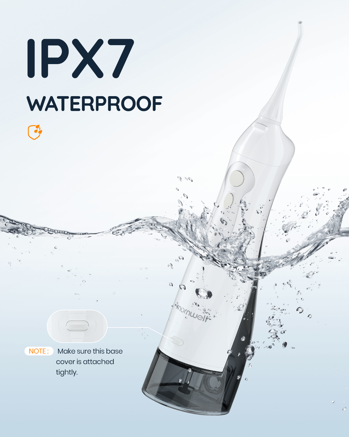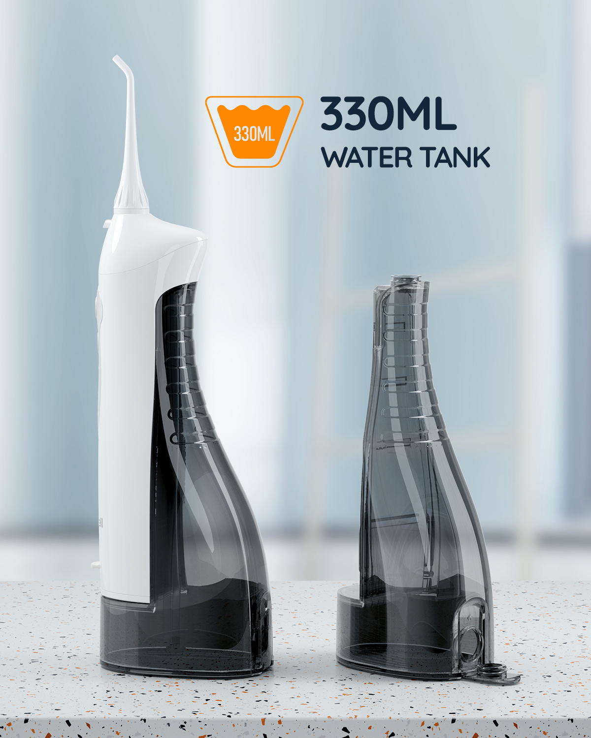 • 【330ml Large Water Tank】This portable dental flosser with 330ml large reservoir can offer 75s uninterrupted water flows for you, enough for cleaning your oral at one time. IPX7 waterproof design allows the dental flosser to be used in the shower.