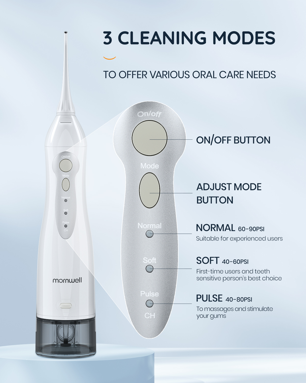 • 【100% Quality & After-sales Guarantee】Mornwell Cordless Water Flosser is Certificated by CE/FCC. If dental flosser with any quality problems, please contact us firstly, We offer replacement guarantee within 3 months.