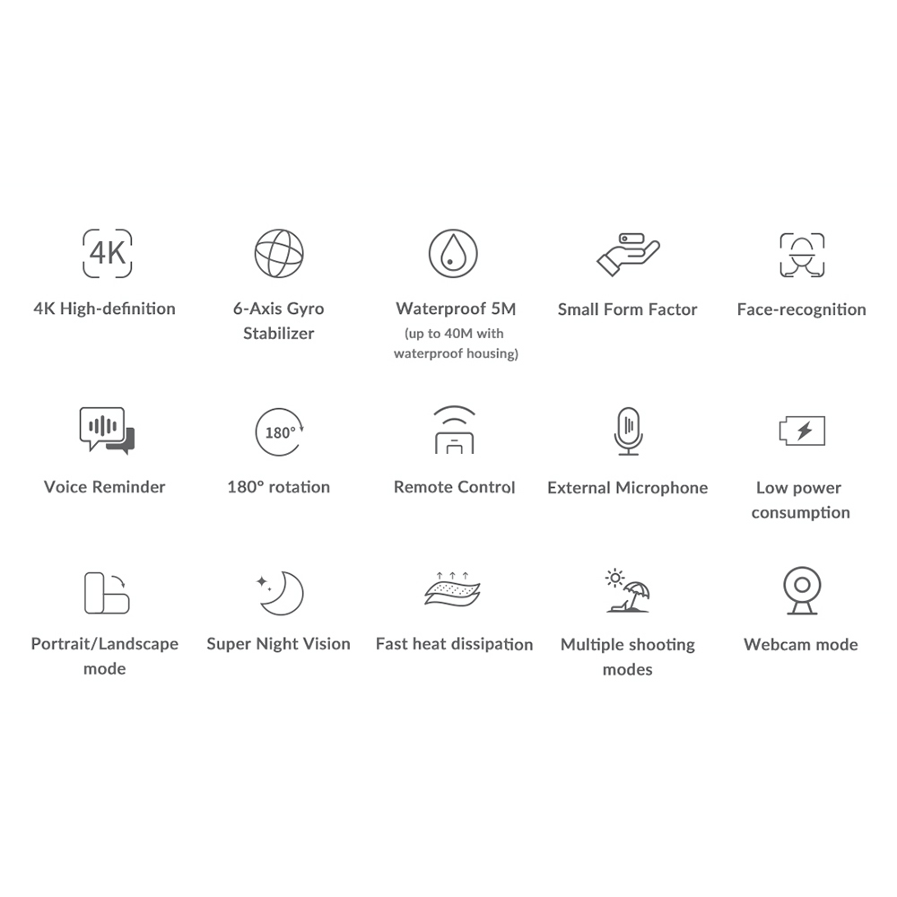 - Mini and lightweight camera body: It is 25% lighter and 23% smaller compared to a regular action cam, making it easy to carry around anytime anywhere