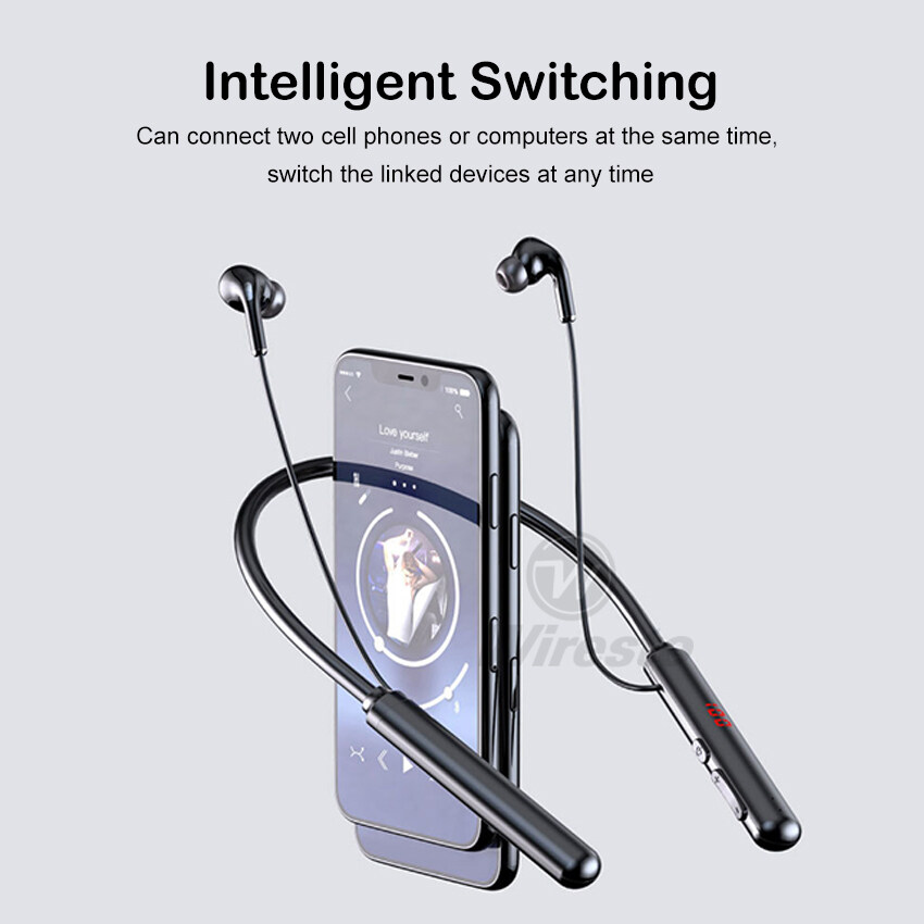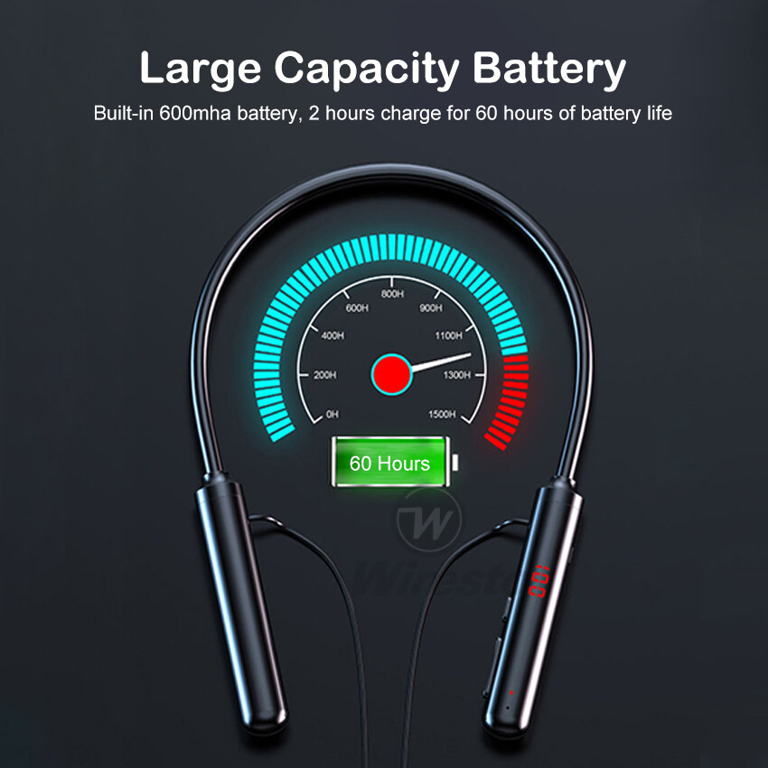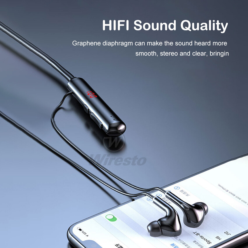 Wiresto Magnetic Headphones Bluetooth 5.0 Earphone Super Bass Wireless Earbuds 60H Standby Neckband Headphone Soft Silicone IPX5 Waterproof Sport Earphone HIFI Stereo Headsets Support 32G TF Card